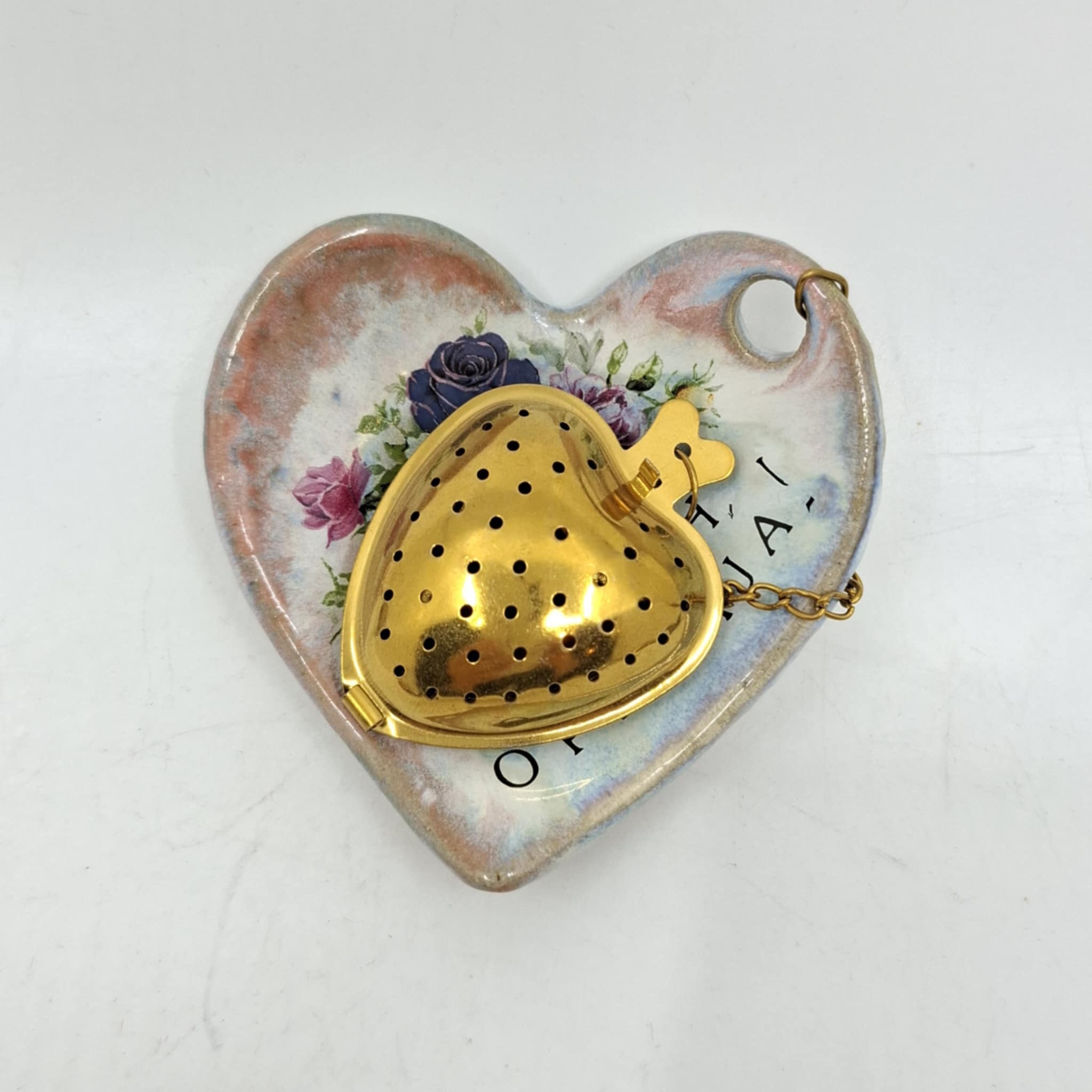 Teesõel alusega, kuhu on mugav pärast teepuru tõmbamist märga konteinerit asetada. Alus on valminud käsitööna ja võib esineda konarusi vms.