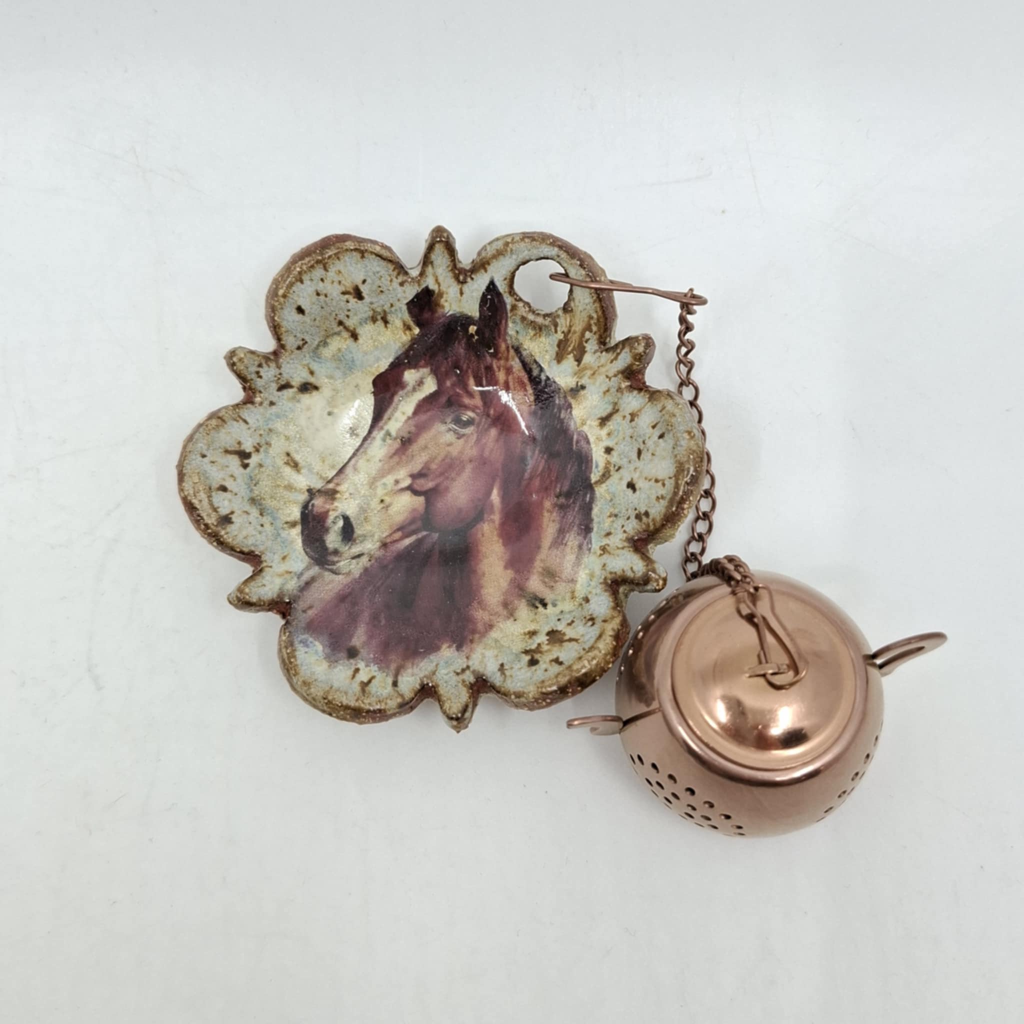 Teesõel alusega, kuhu on mugav pärast teepuru tõmbamist märga konteinerit asetada. Alus on valminud käsitööna ja võib esineda konarusi vms.
