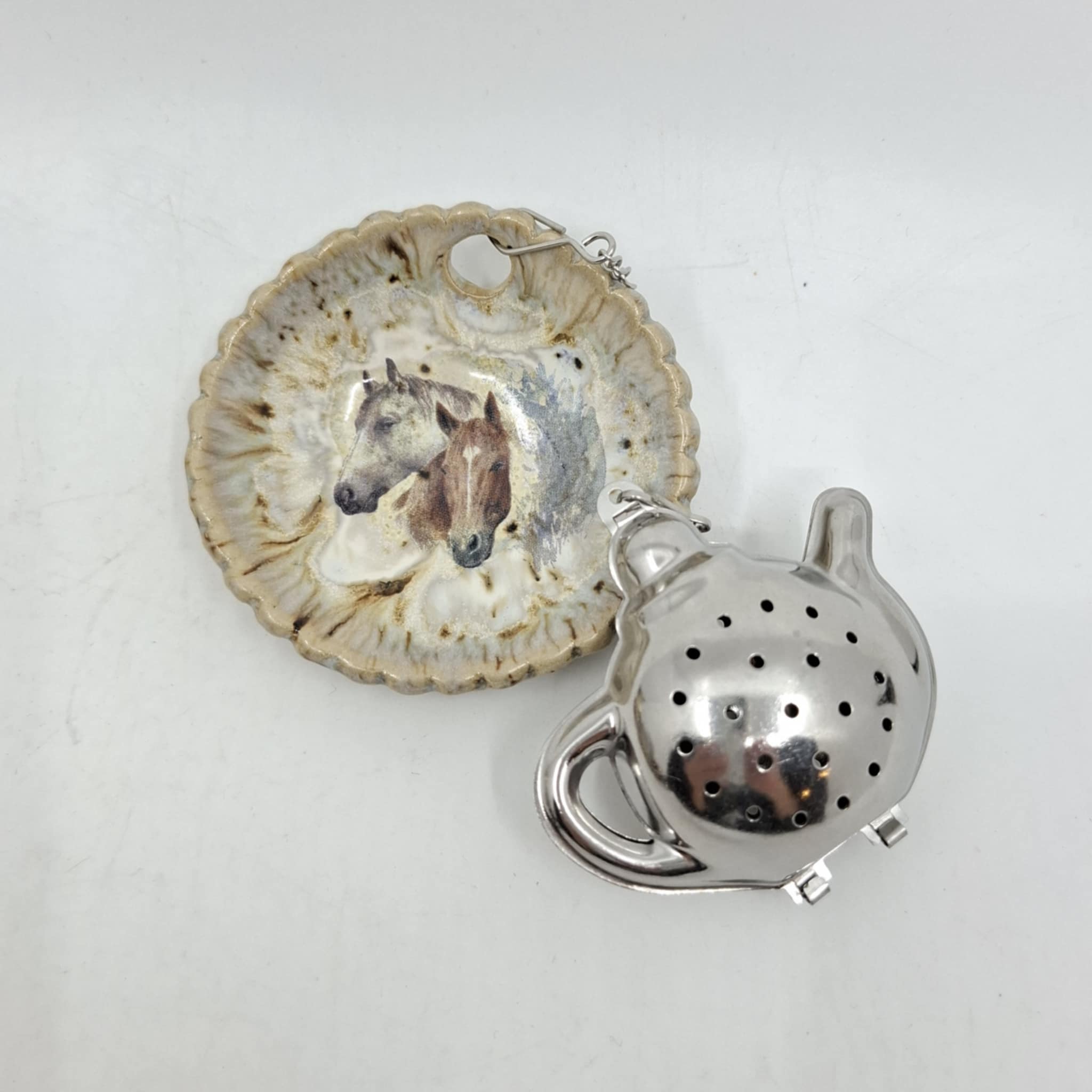 Teesõel alusega, kuhu on mugav pärast teepuru tõmbamist märga konteinerit asetada. Alus on valminud käsitööna ja võib esineda konarusi vms.