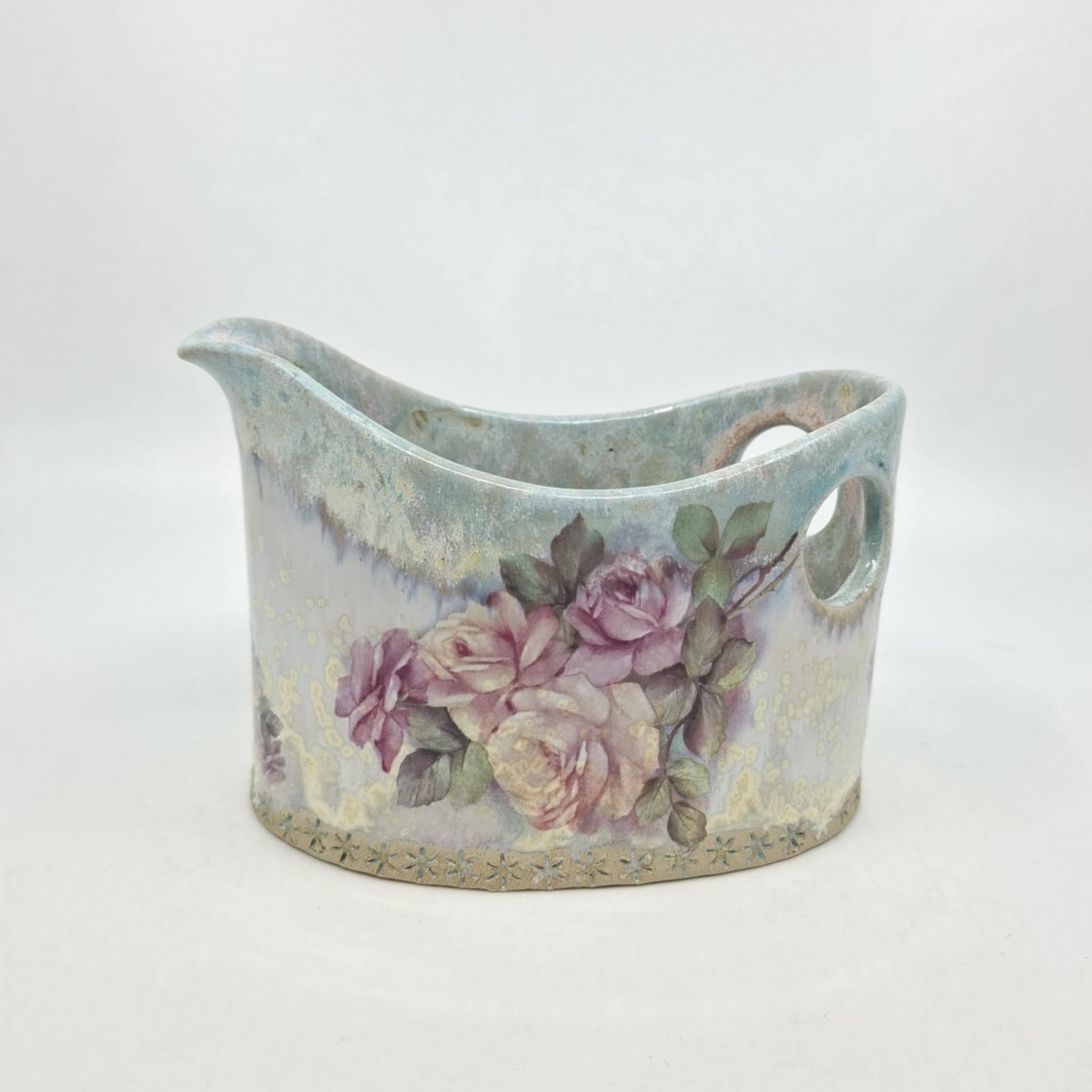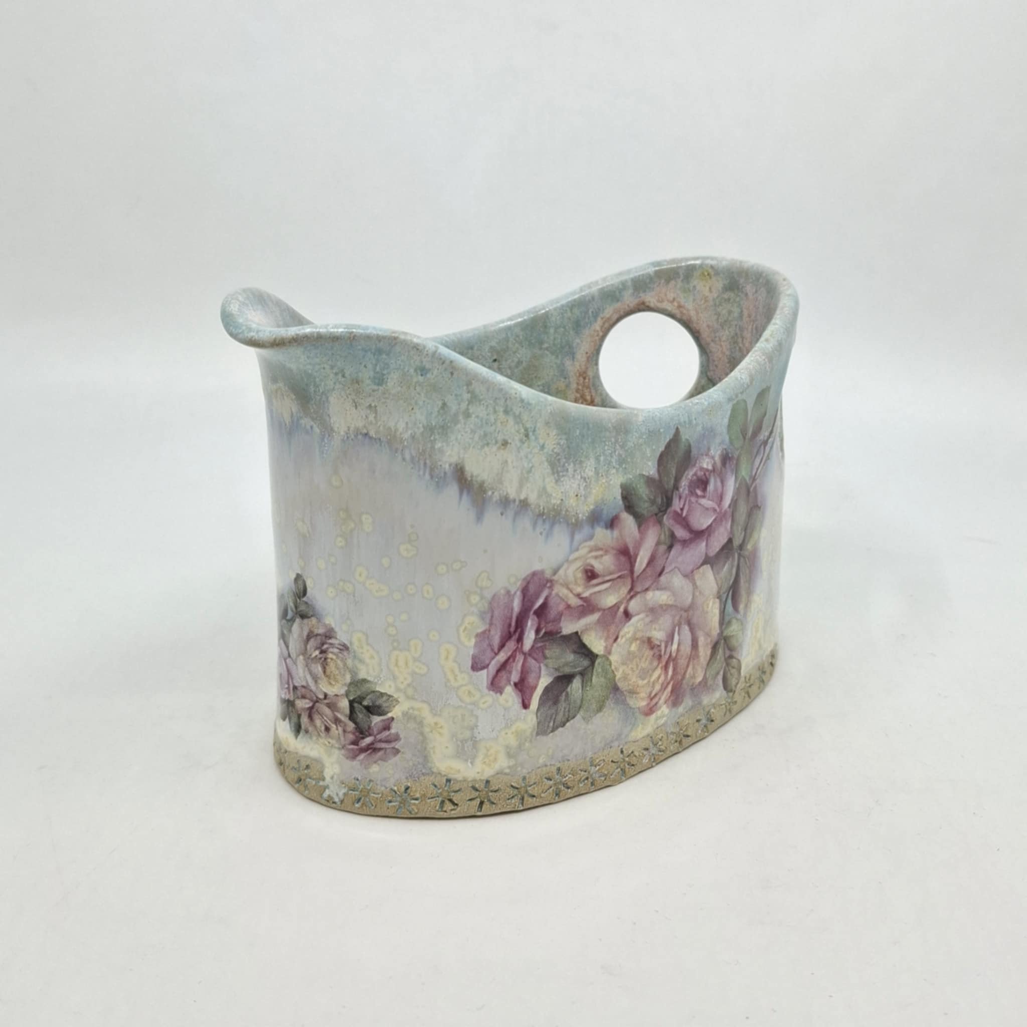 Keraamiline hoiunõu/kann 0,5-liitrisele hapukoore kilepakile. Toode on valminud käsitööna ning võib esineda ebatasasusi, konarusi jms.