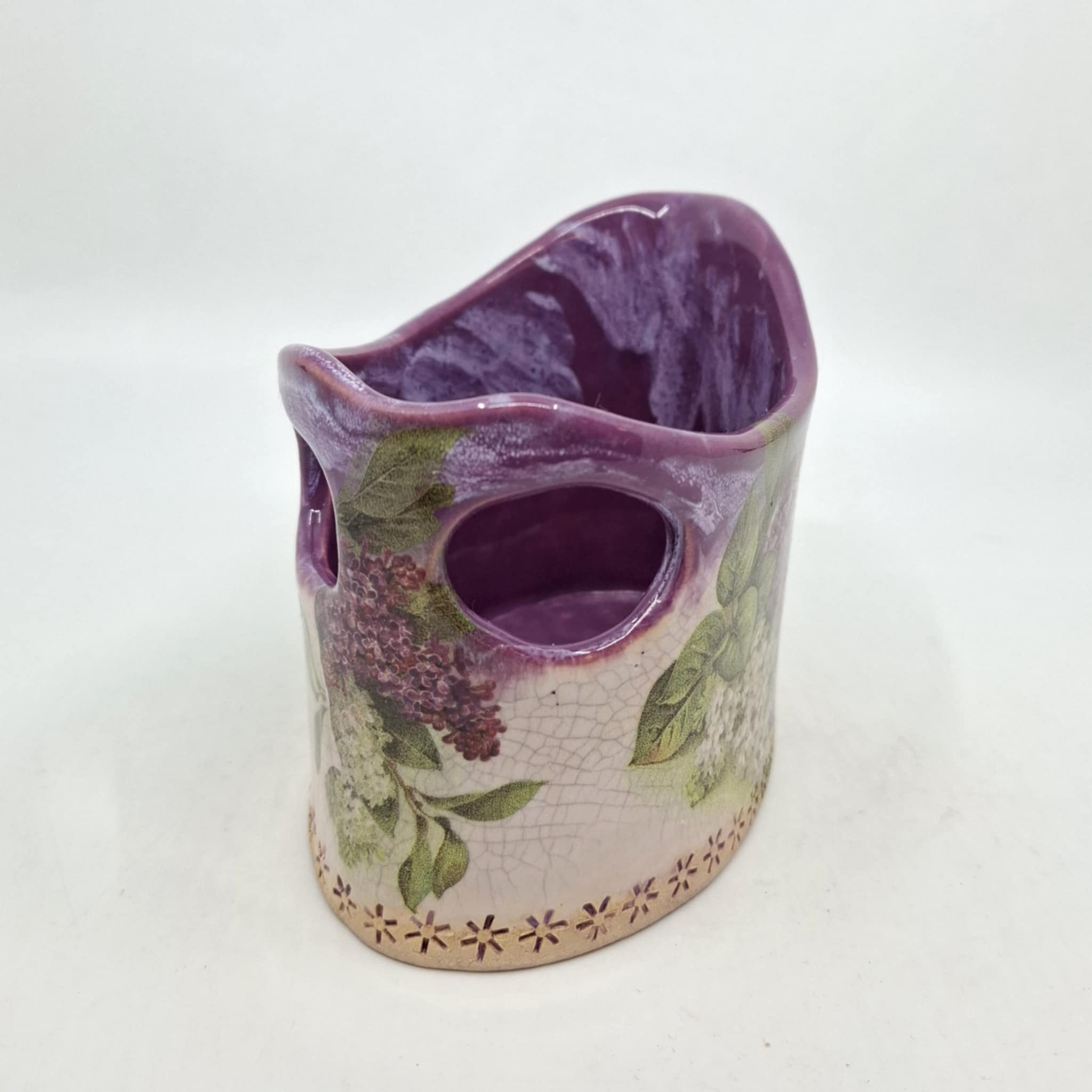 Keraamiline hoiunõu 0,5-liitrisele hapukoore kilepakile. Toode on valminud käsitööna ning võib esineda ebatasasusi, konarusi jms.