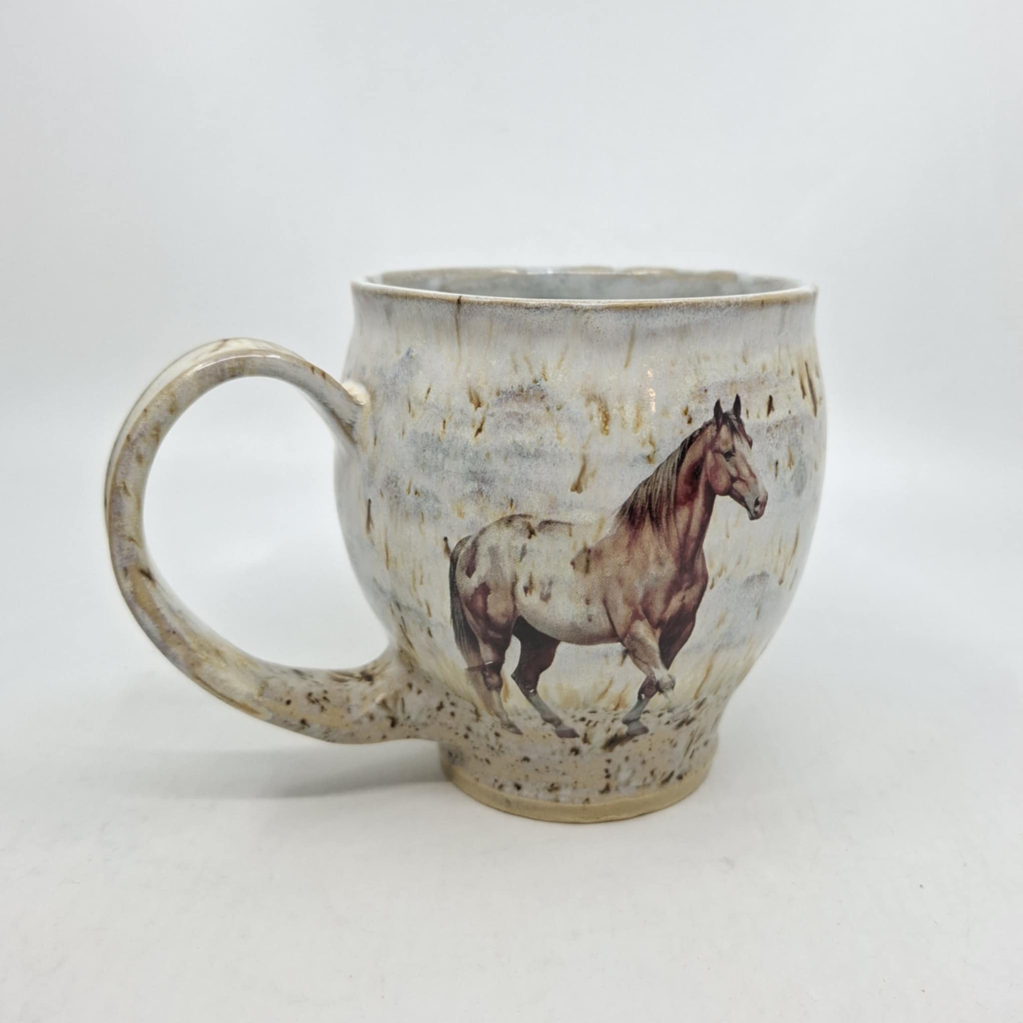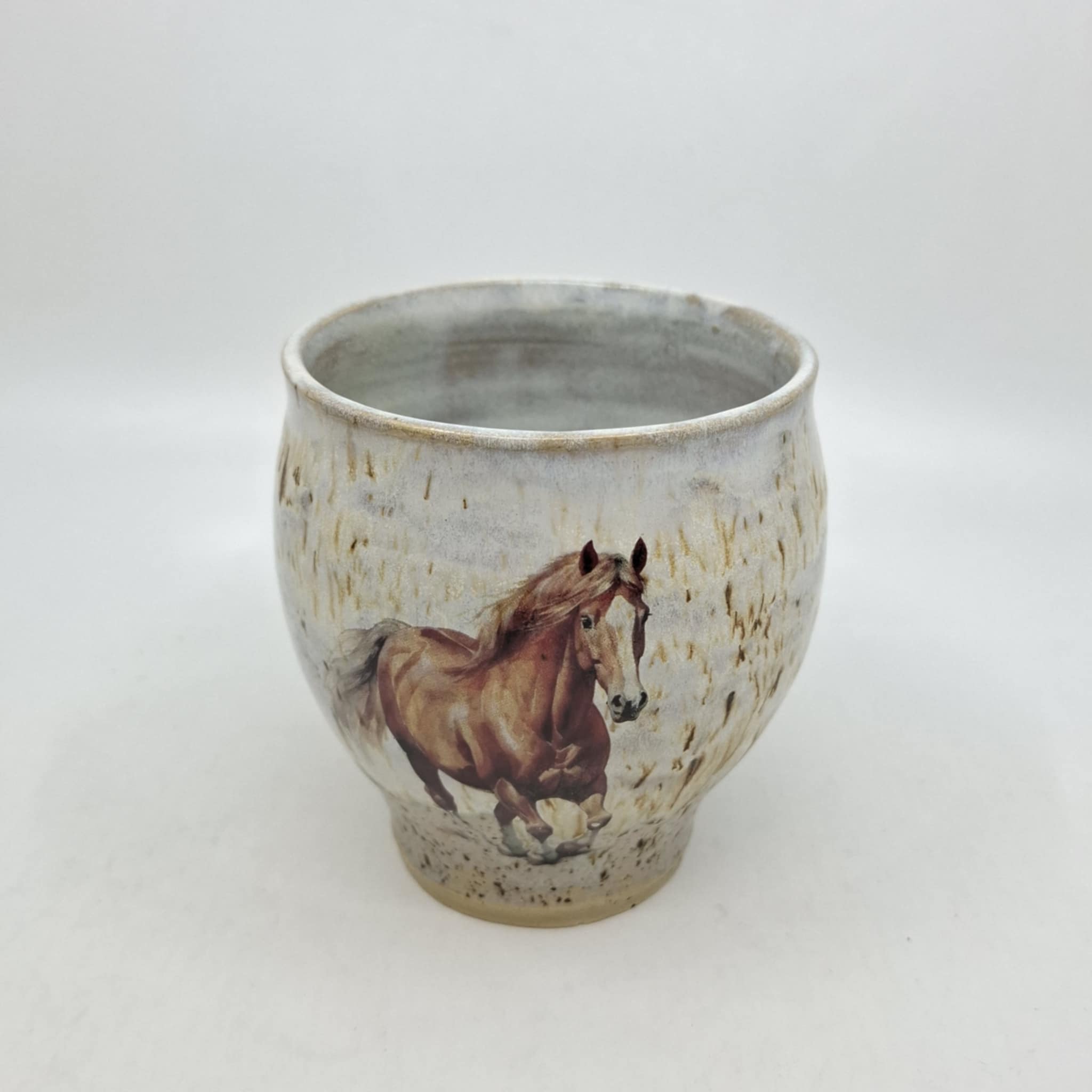 Potikedral treitud kruus, mis mahutab 450 ml, kõrgus 10,5 cm. Kruus on valminud käsitööna, võib esineda ebatasasusi, konarusi jms.