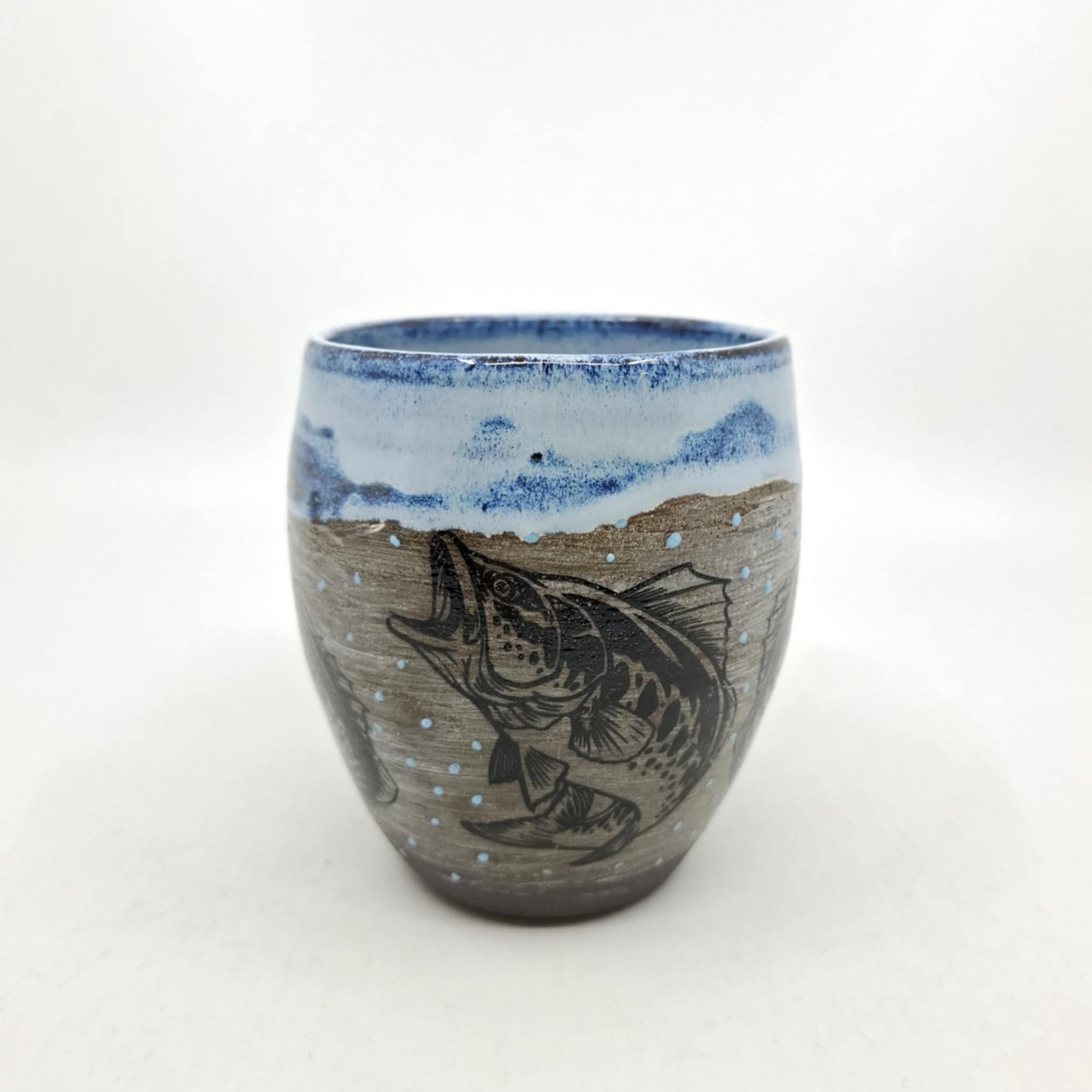 Potikedral mustast savist treitud kruus, mis mahutab 400 ml, kõrgus 10,5 cm. Kruus on valminud käsitööna, võib esineda ebatasasusi, konarusi jms.