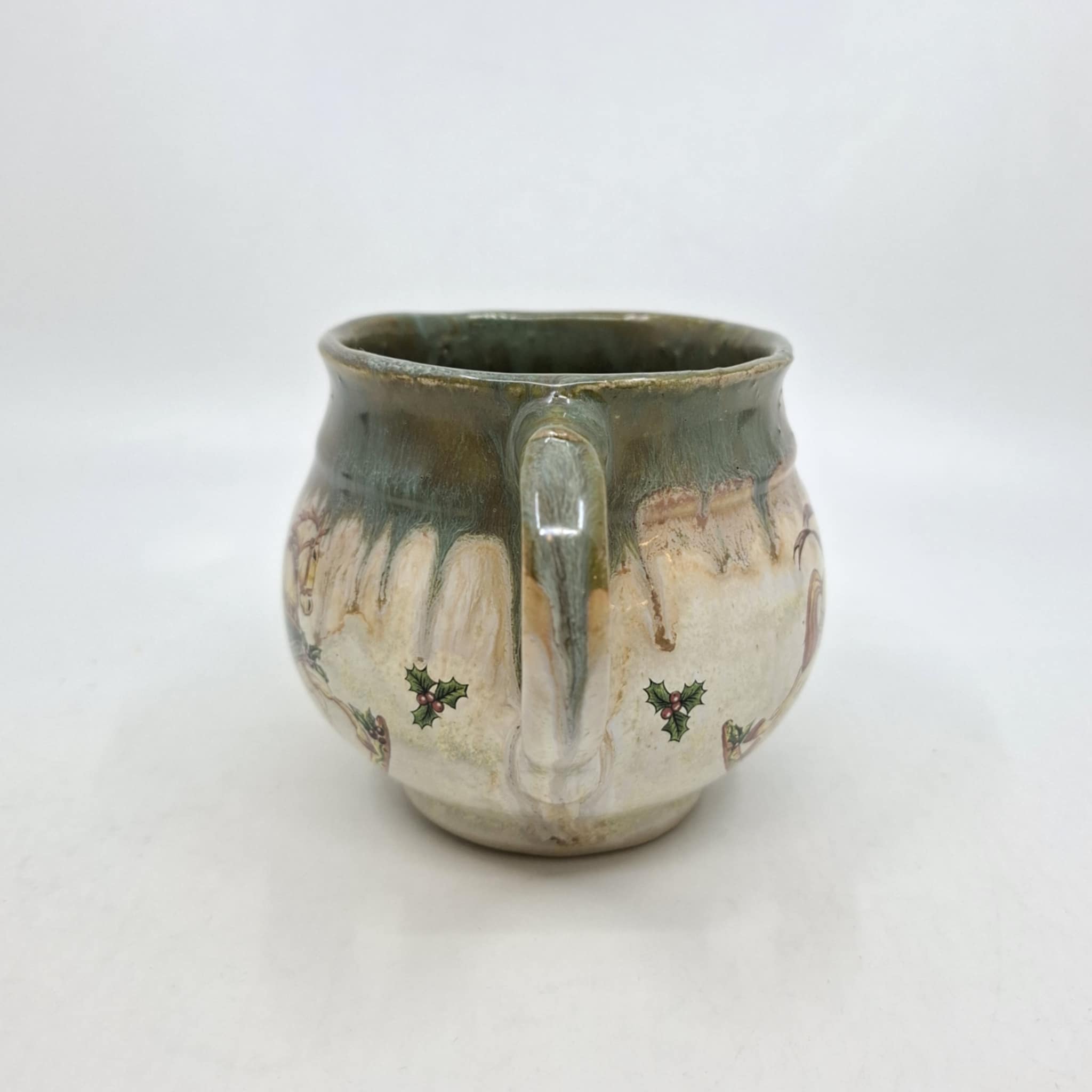 Keraamiline kruus, mis mahutab kuni 400 ml, kõrgus 9 cm. Kruus on valminud käsitööna, võib esineda ebatasasusi, konarusi jms.