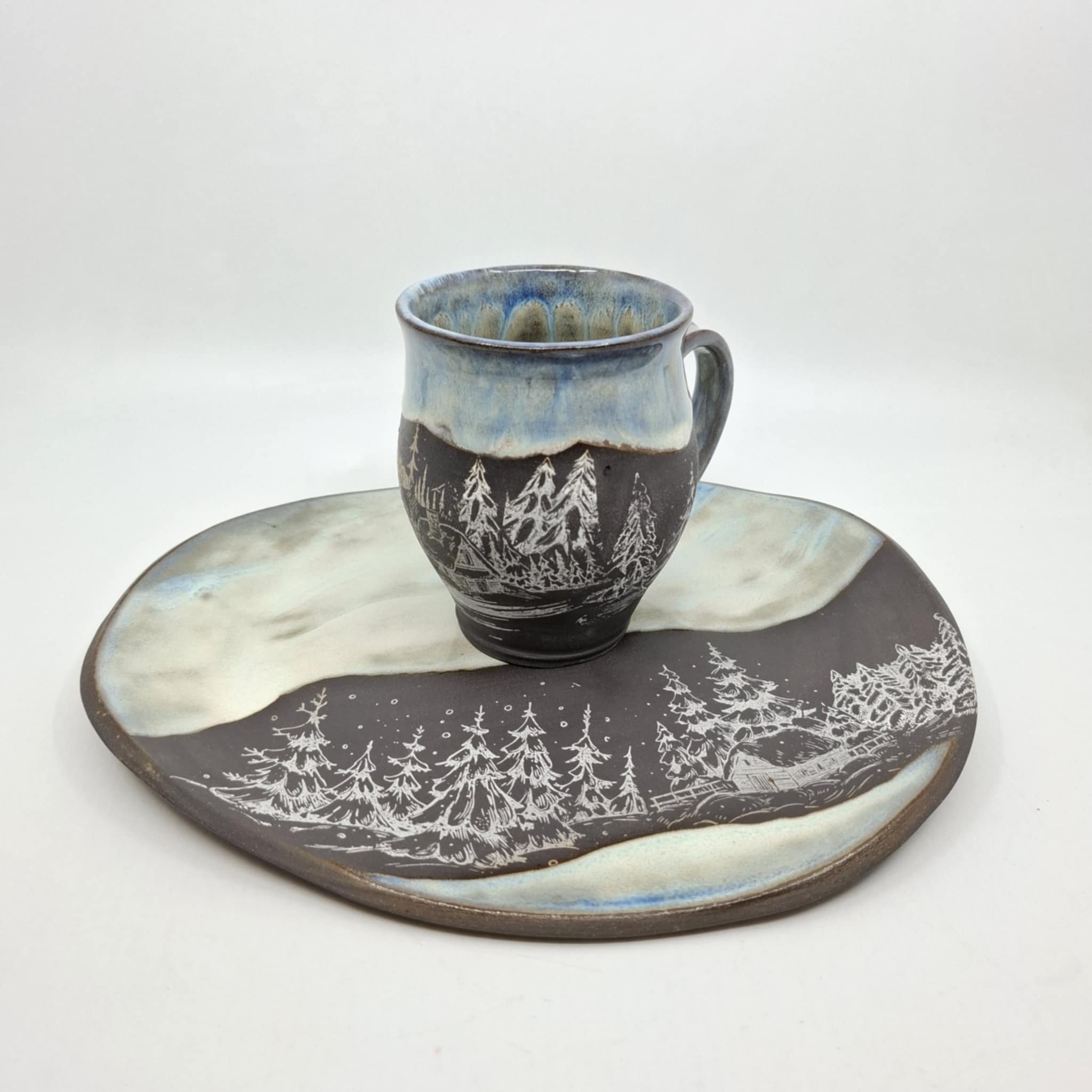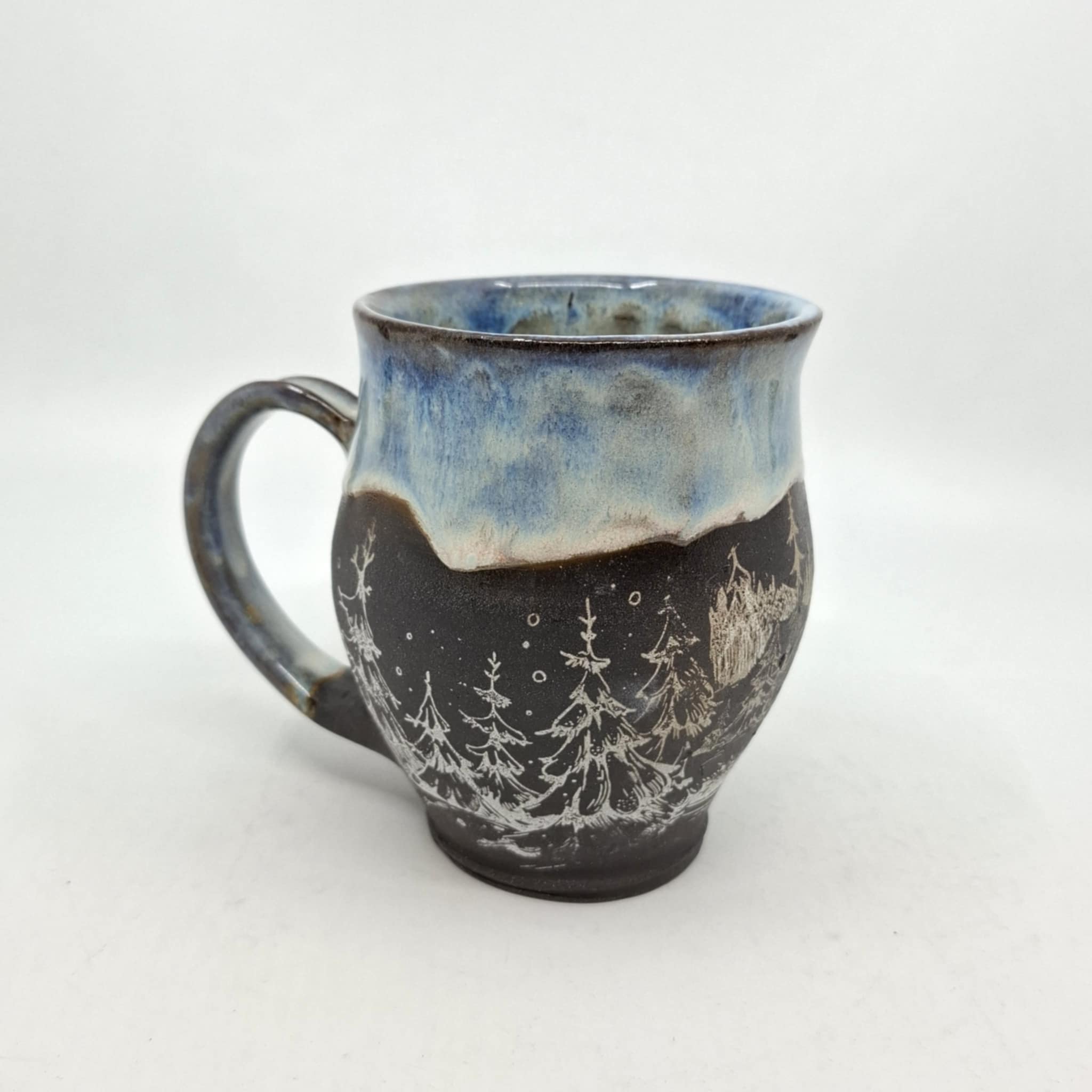 Potikedral mustast savist treitud kruus, mis mahutab kuni 450 ml, kõrgus 11,3 cm. Kruus on valminud käsitööna, võib esineda ebatasasusi, konarusi jms.