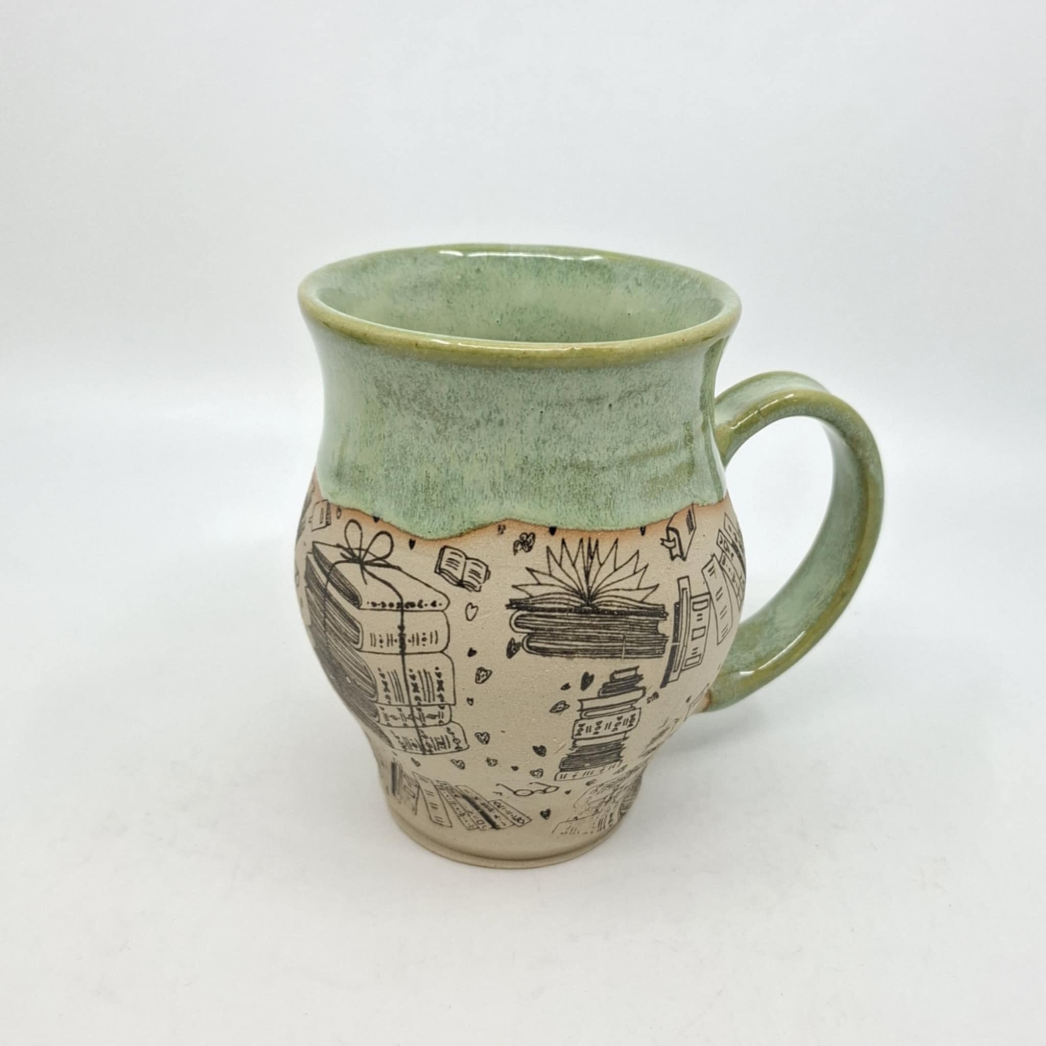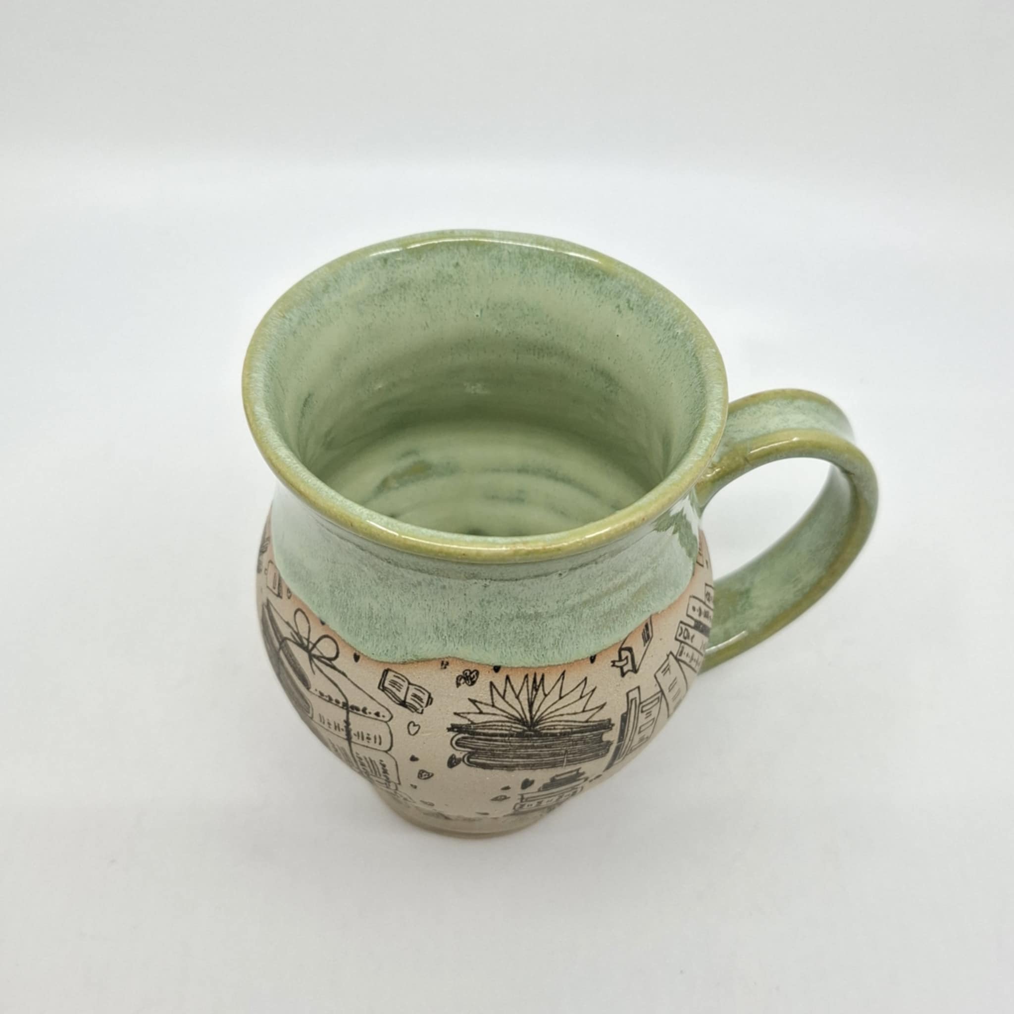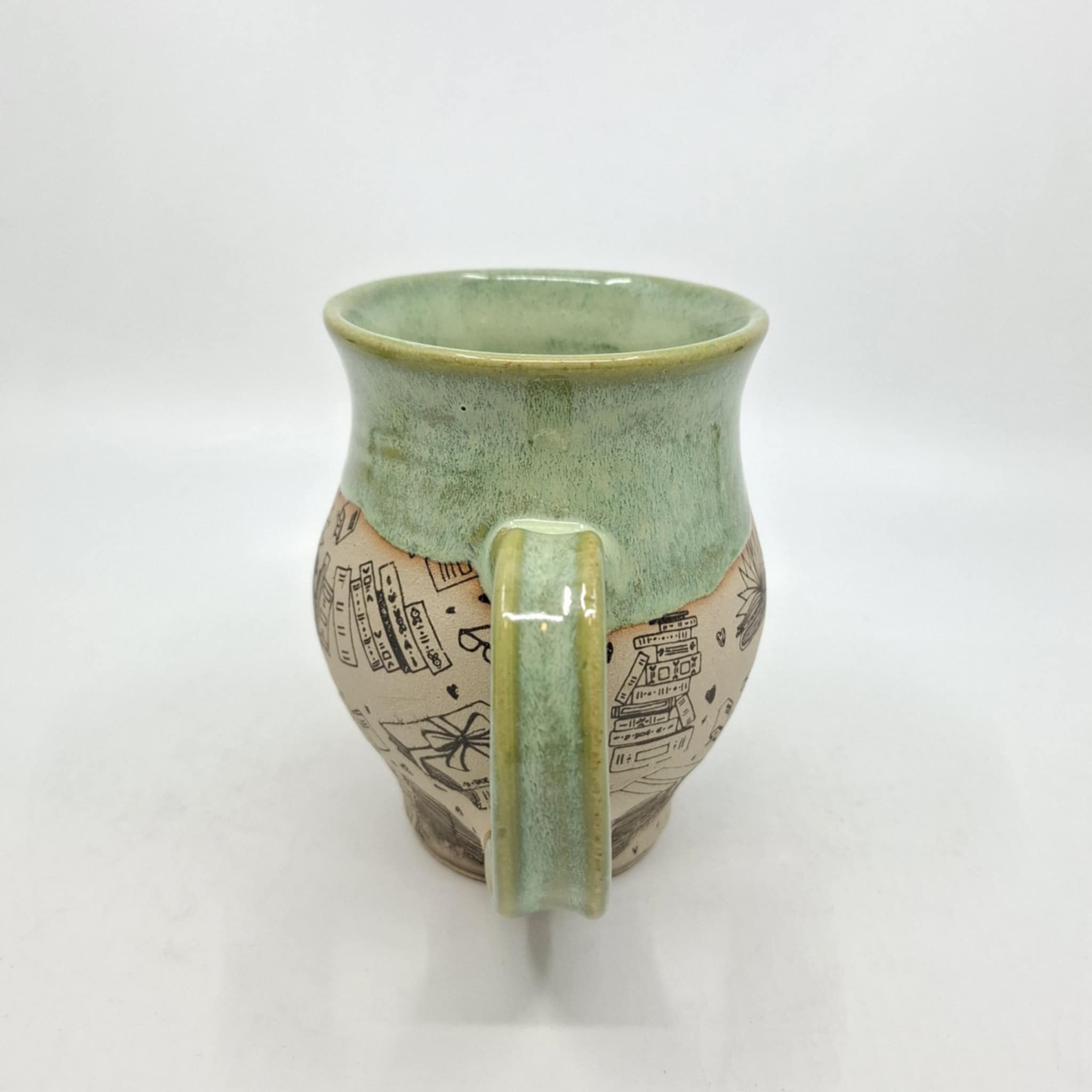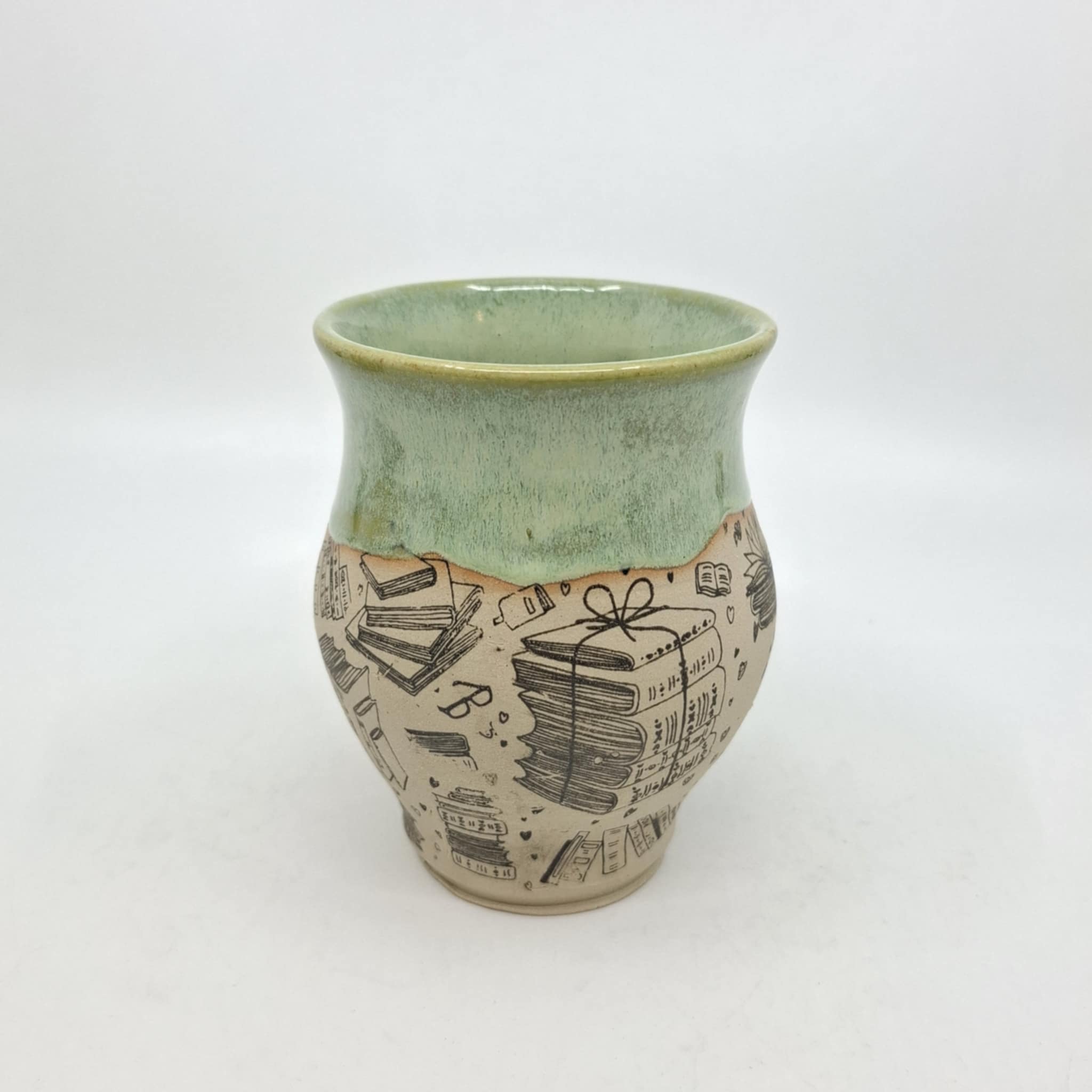 Potikedral treitud kruus, mis mahutab 400 ml, kõrgus 11,5 cm. Kruus on valminud käsitööna, võib esineda ebatasasusi, konarusi jms.