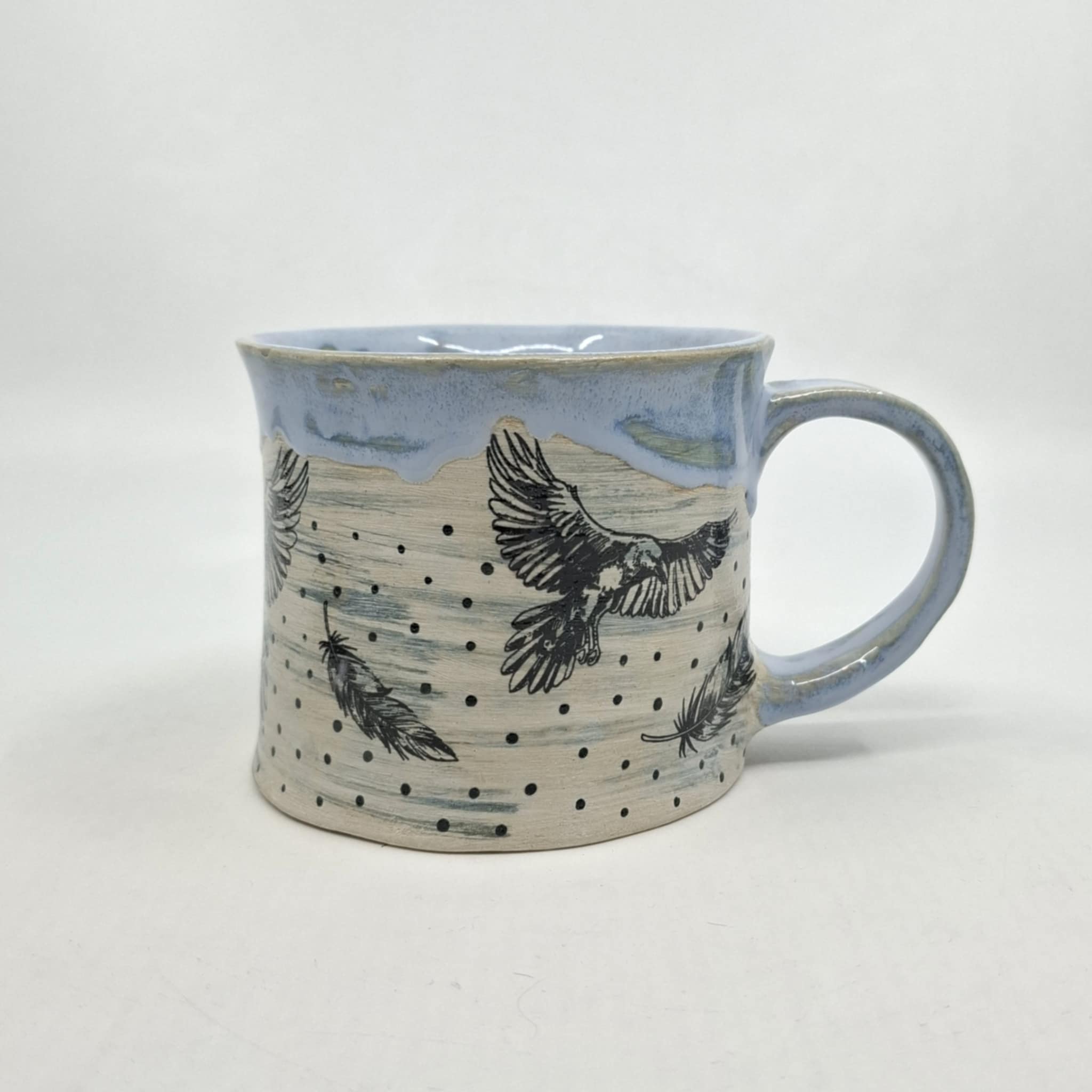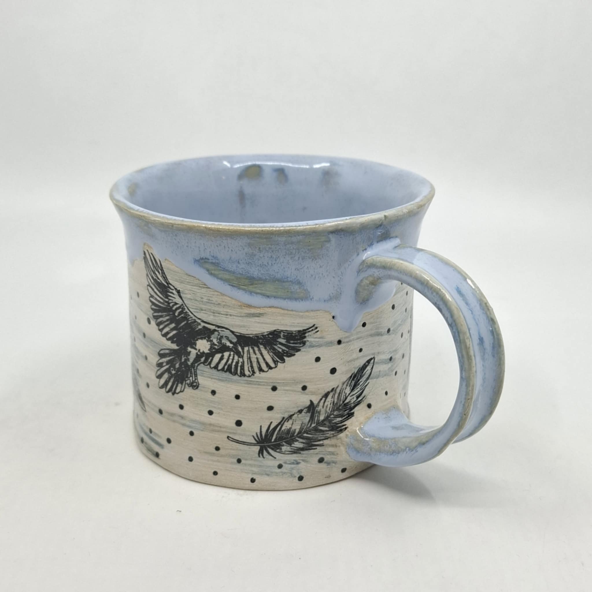 Keraamiline kruus, mis mahutab ~400 ml, kõrgus 8,5 cm. Kruus on valminud käsitööna ning võib esineda ebatasasusi, konarusi jms.