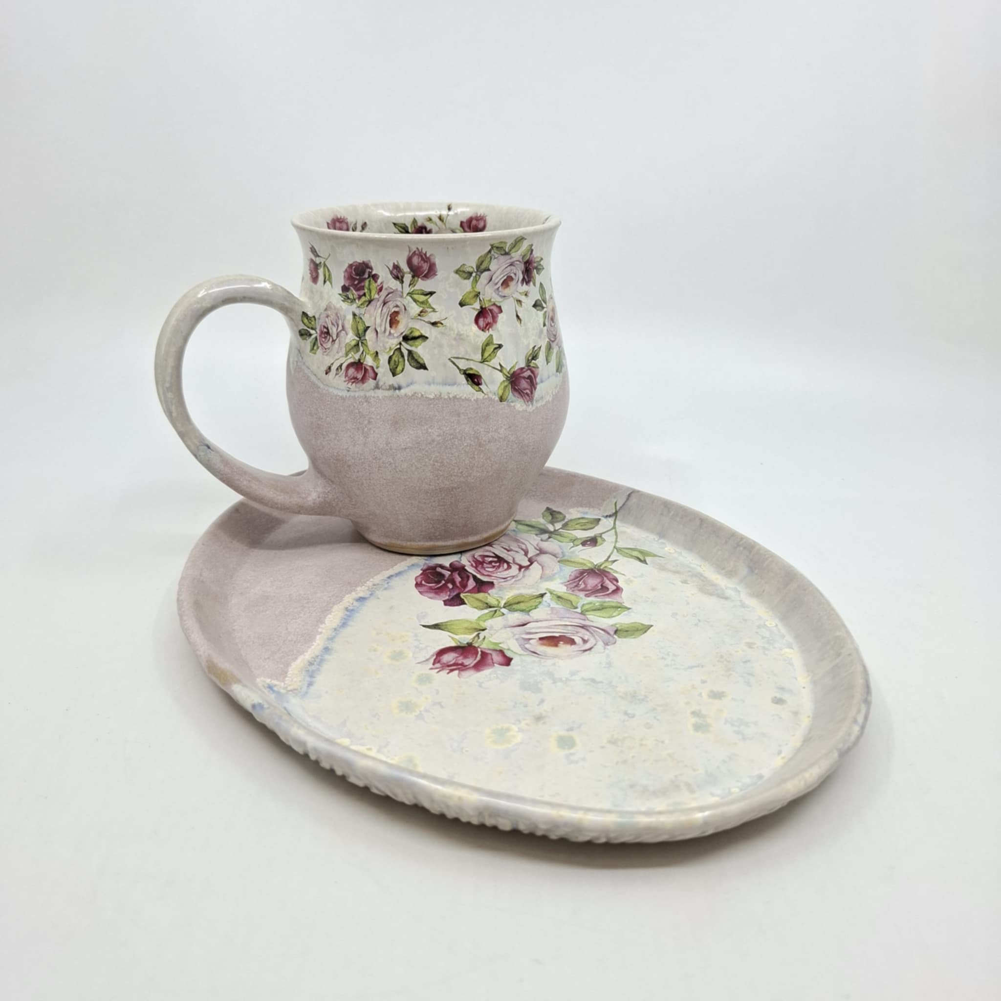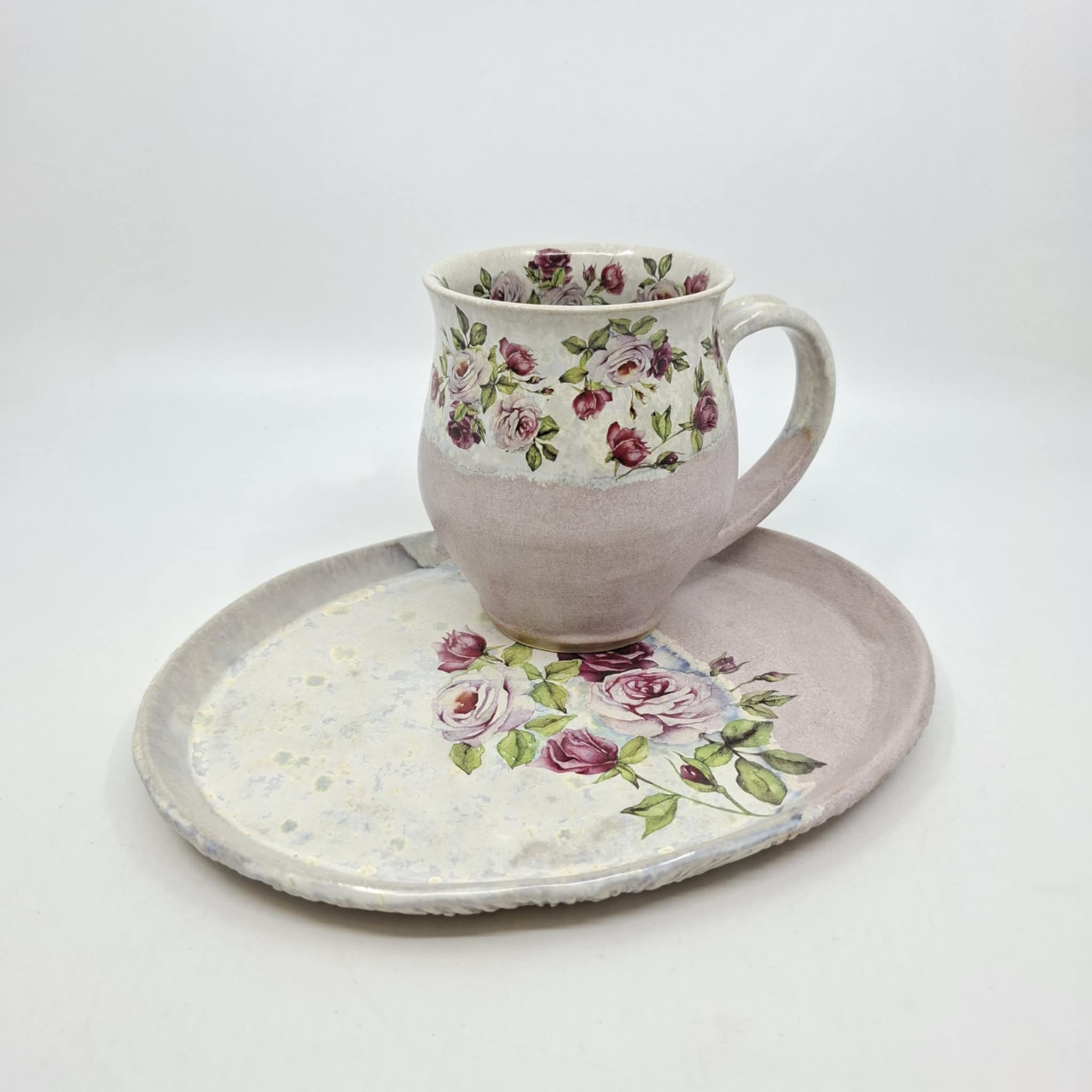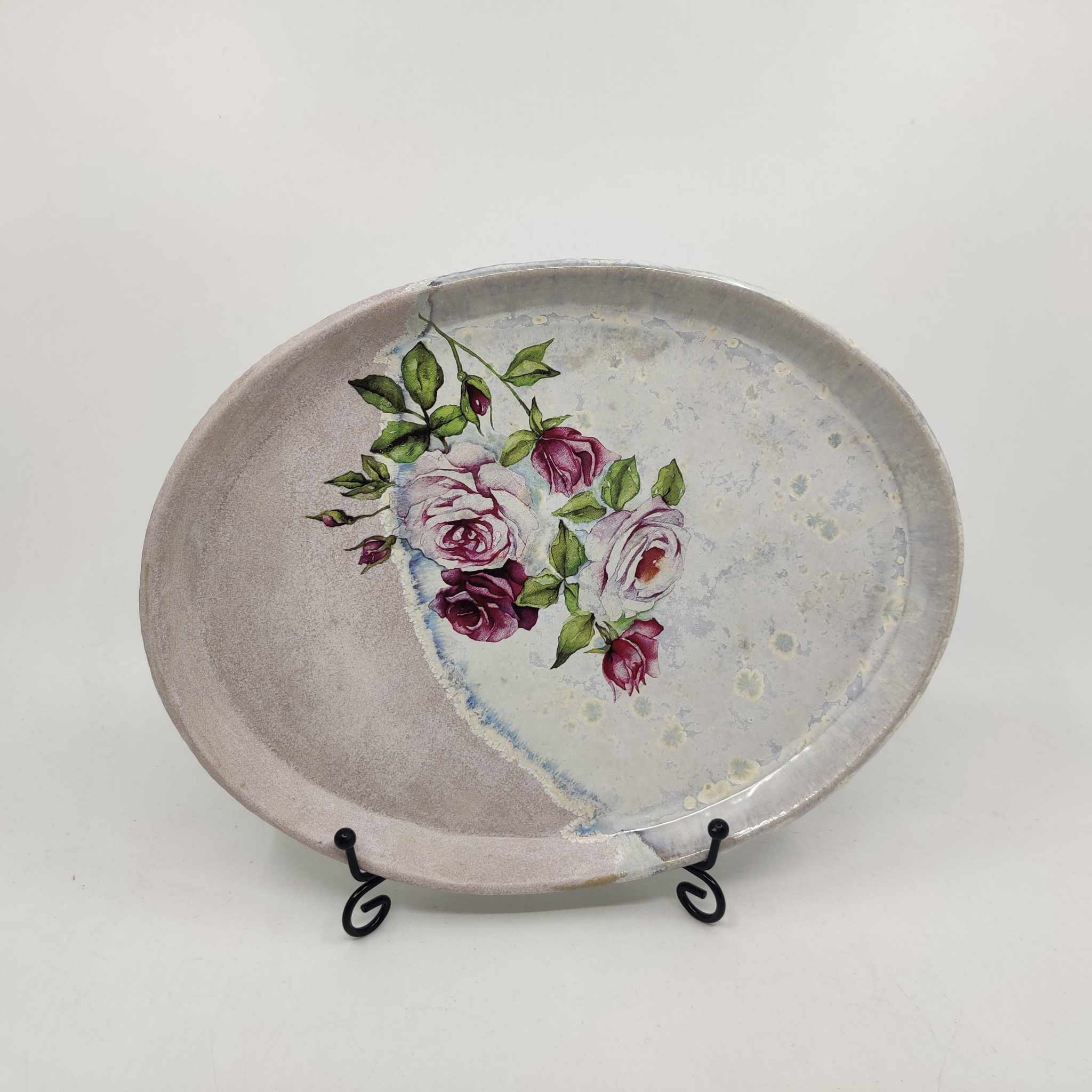 Keraamiline taldrik sarjast “Roosiaed”, mille läbimõõt on 17,7*22,8 cm. Taldrik on valminud käsitööna ning võib esineda ebatasasusi, konarusi jms.