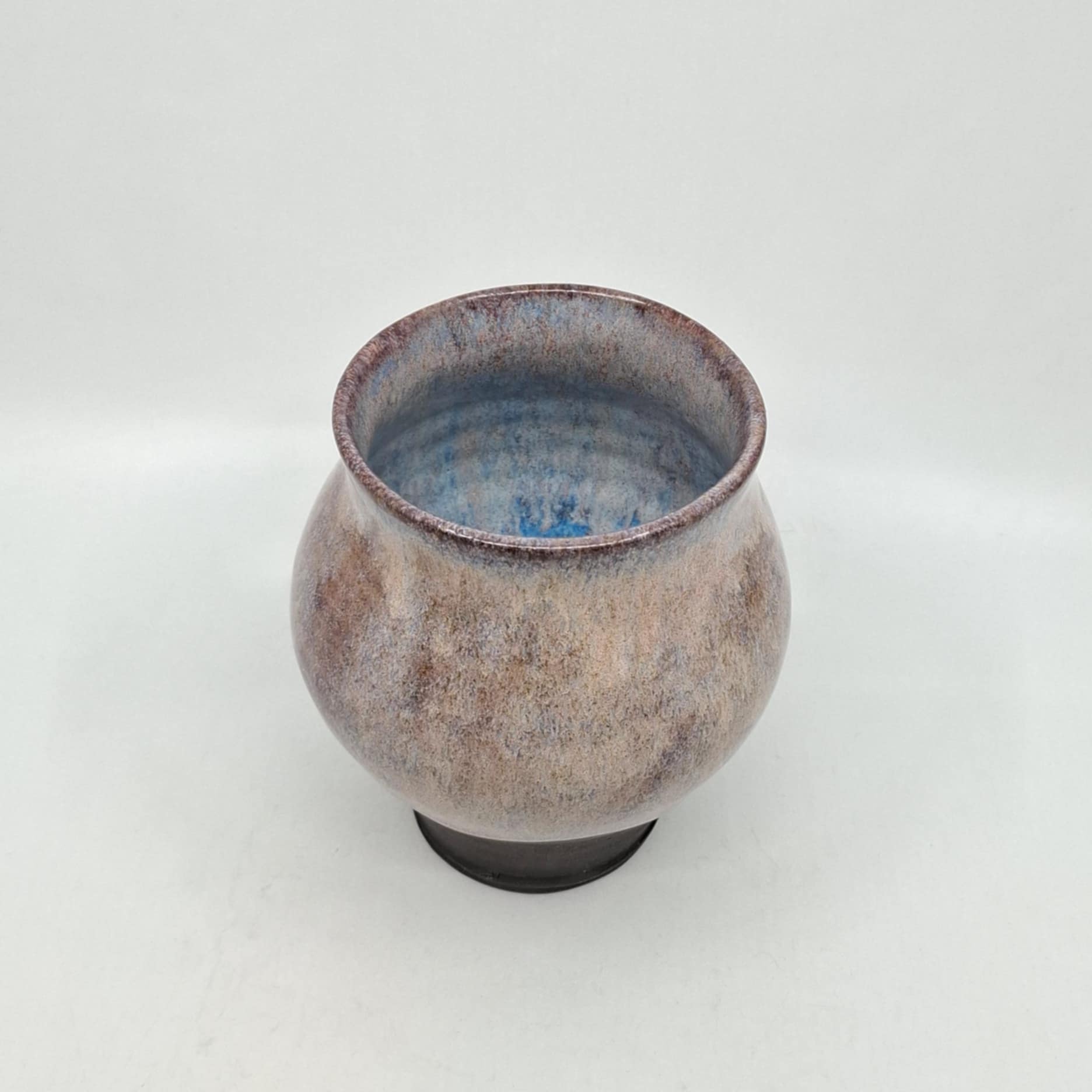 Potikedral mustast savist treitud lillevaas, kõrgus 13,5 cm, Ø 9,5 cm. Vaas on valminud käsitööna, võib esineda ebatasasusi, konarusi jms.