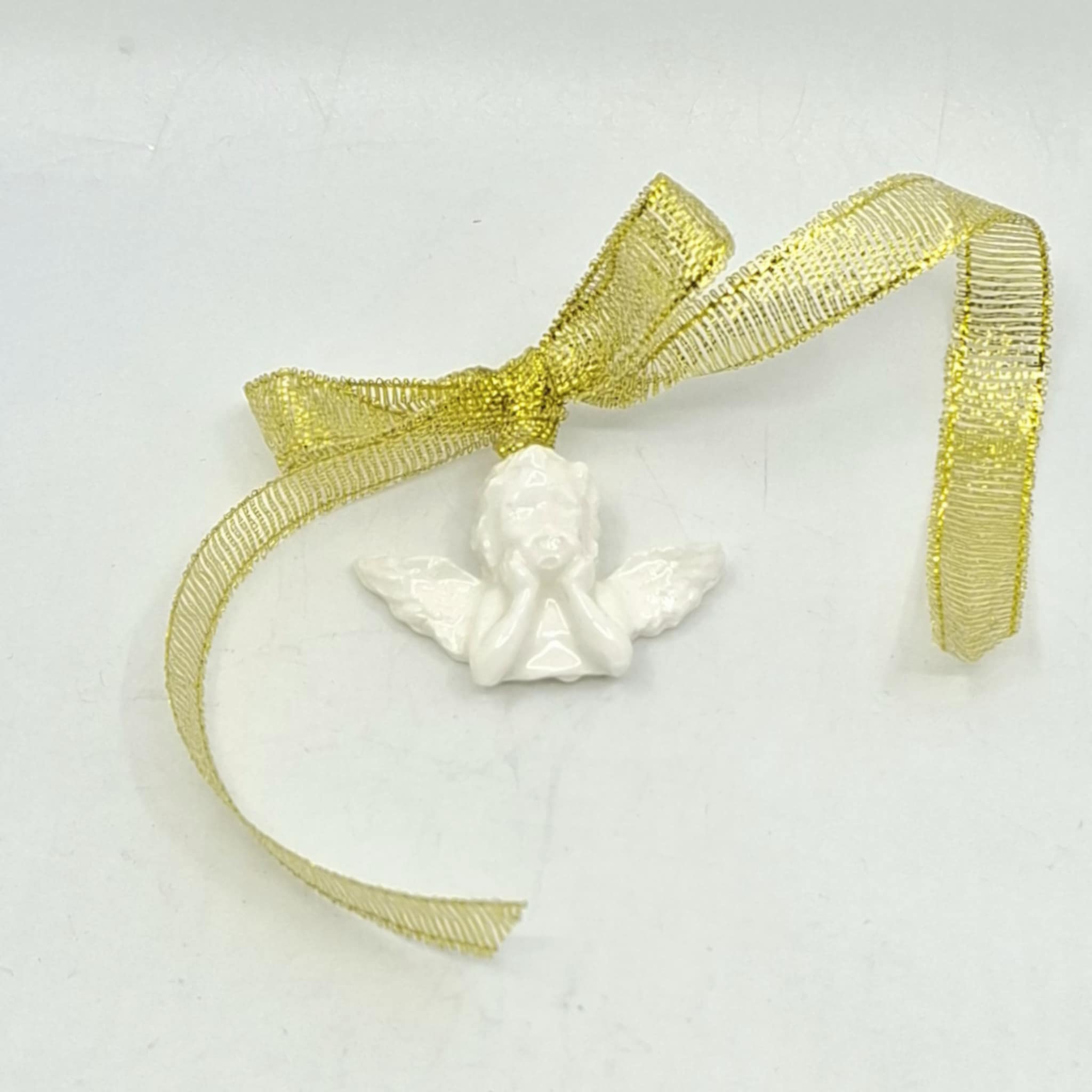 Riputusaasaga väike portselanist ingel, mille läbimõõt on 2,5 * 3,5 cm.
