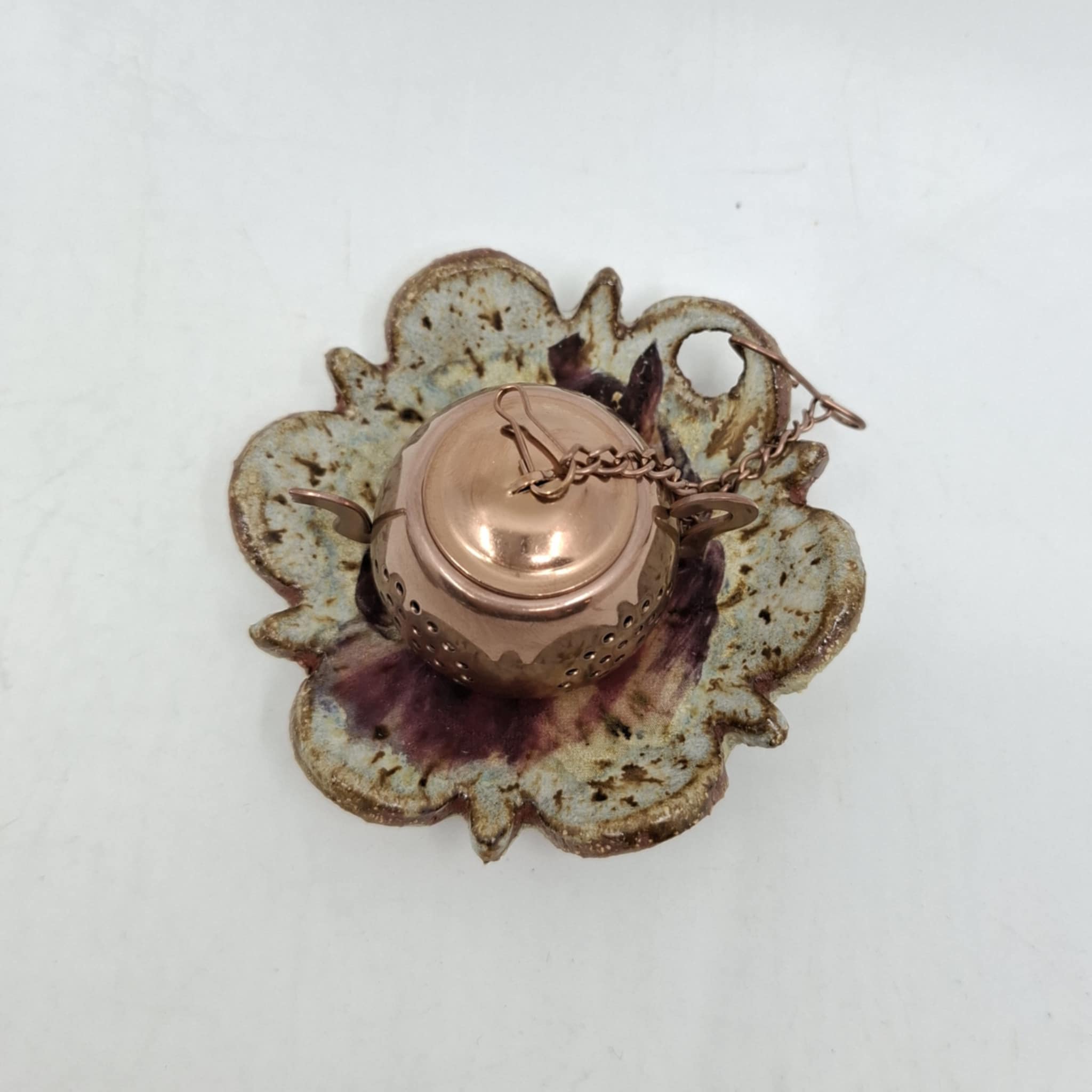 Teesõel alusega, kuhu on mugav pärast teepuru tõmbamist märga konteinerit asetada. Alus on valminud käsitööna ja võib esineda konarusi vms.