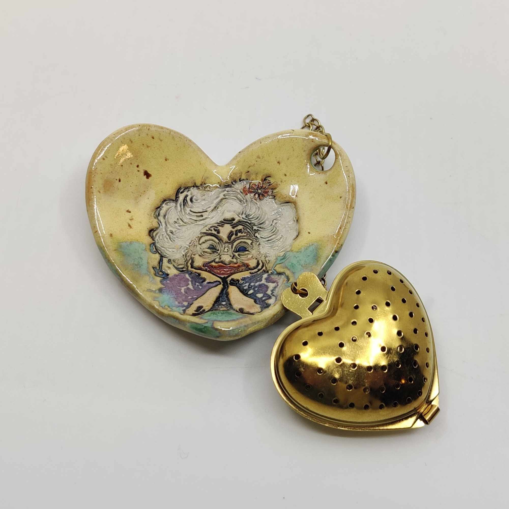 Teesõel alusega, kuhu on mugav pärast teepuru tõmbamist märga konteinerit asetada. Alus on valminud käsitööna ja võib esineda konarusi vms.