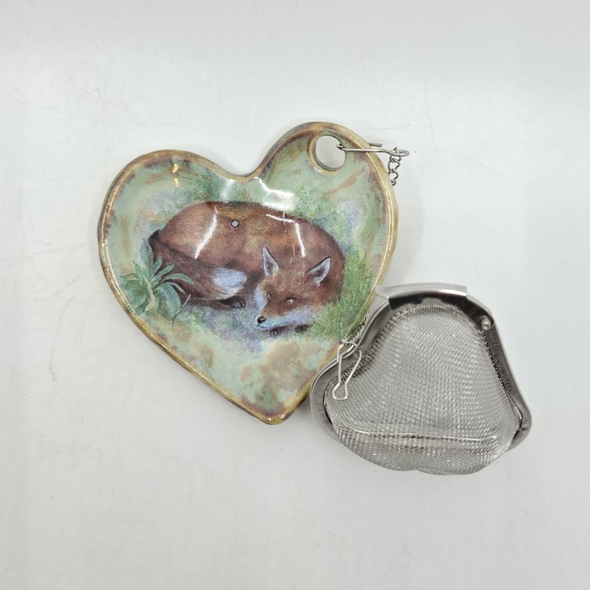 Teesõel alusega, kuhu on mugav pärast teepuru tõmbamist märga konteinerit asetada. Alus on valminud käsitööna ja võib esineda konarusi vms.