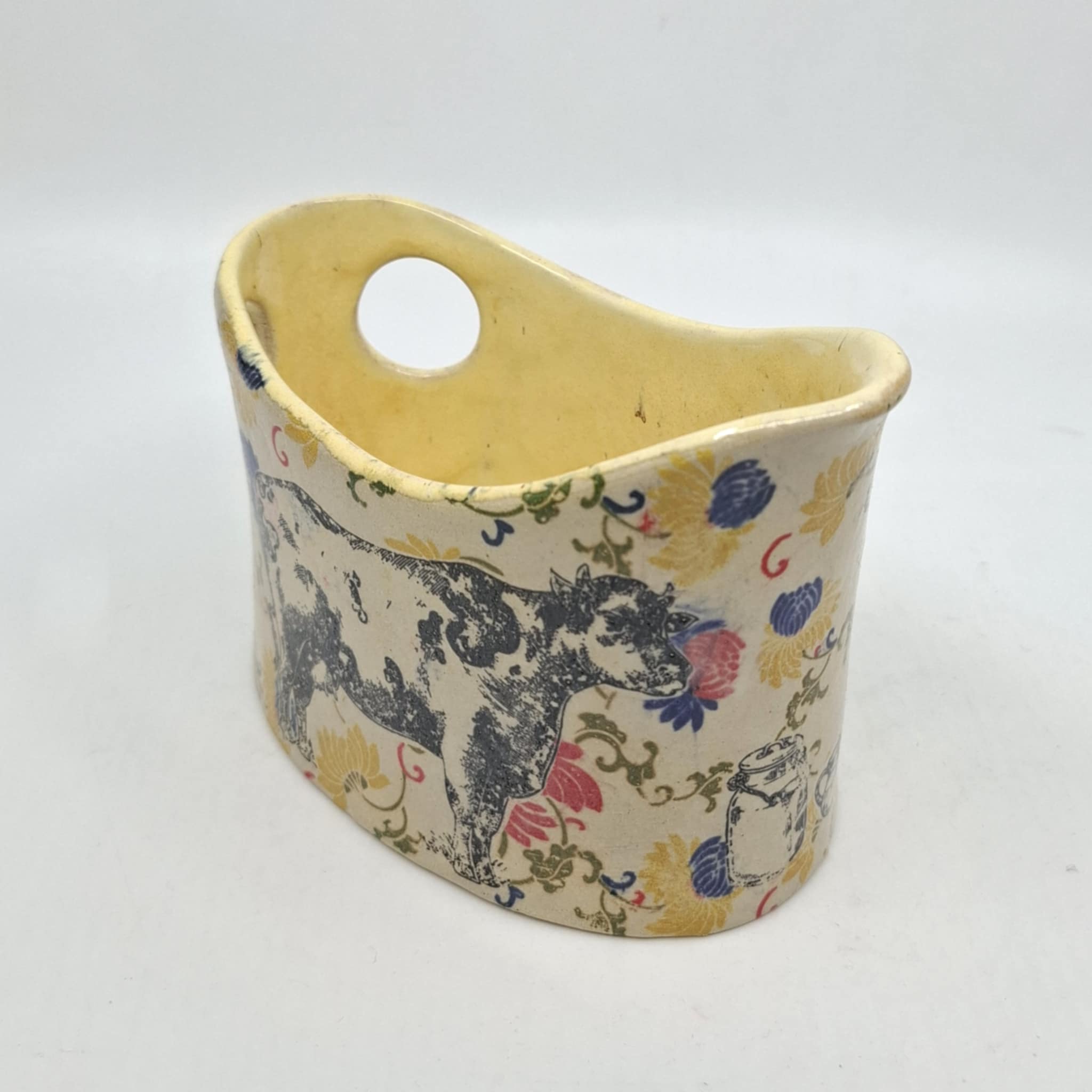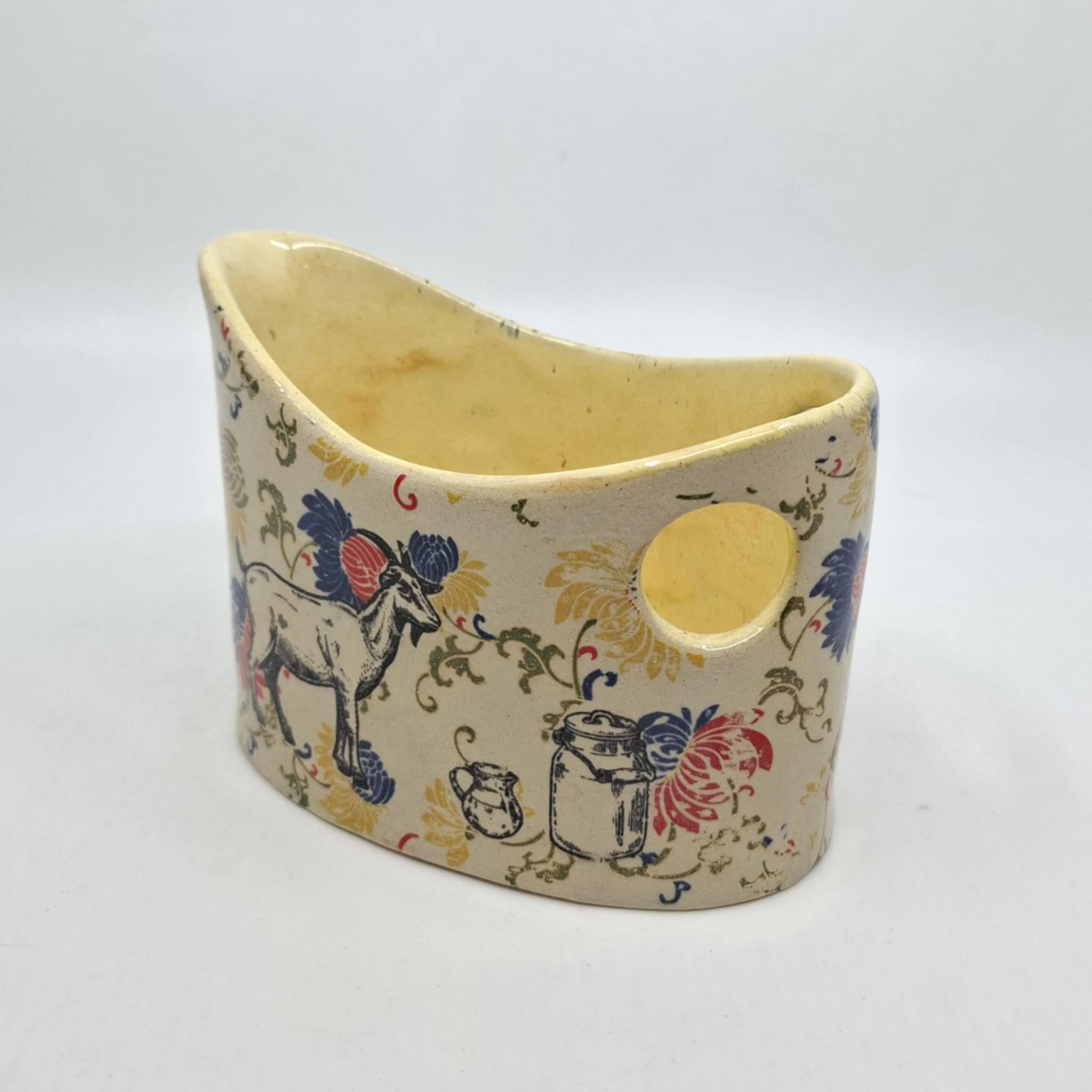 Keraamiline hoiunõu 0,5-liitrisele hapukoore kilepakile. Toode on valminud käsitööna ning võib esineda ebatasasusi, konarusi jms.