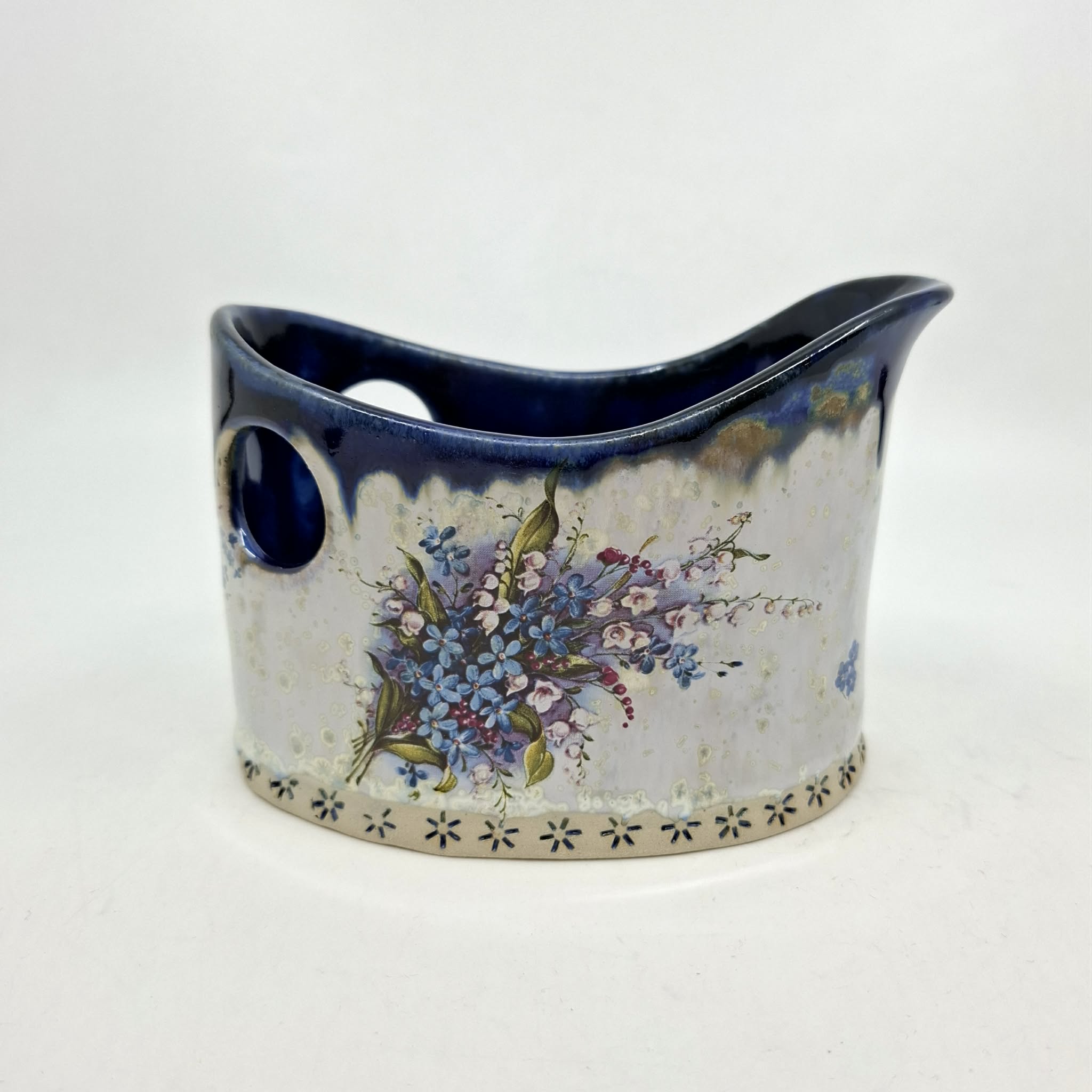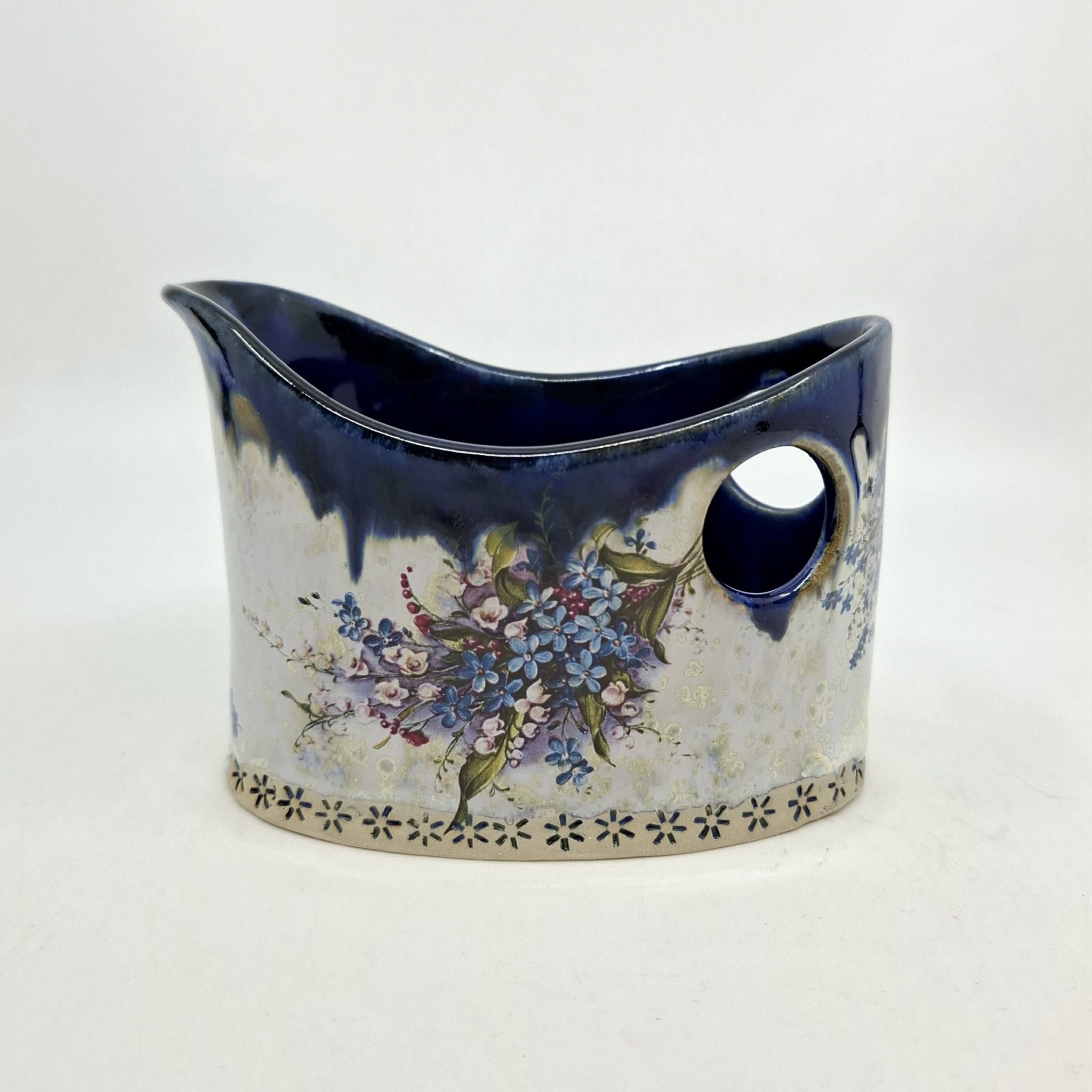Keraamiline hoiunõu 0,5-liitrisele hapukoore kilepakile. Toode on valminud käsitööna ning võib esineda ebatasasusi, konarusi jms.