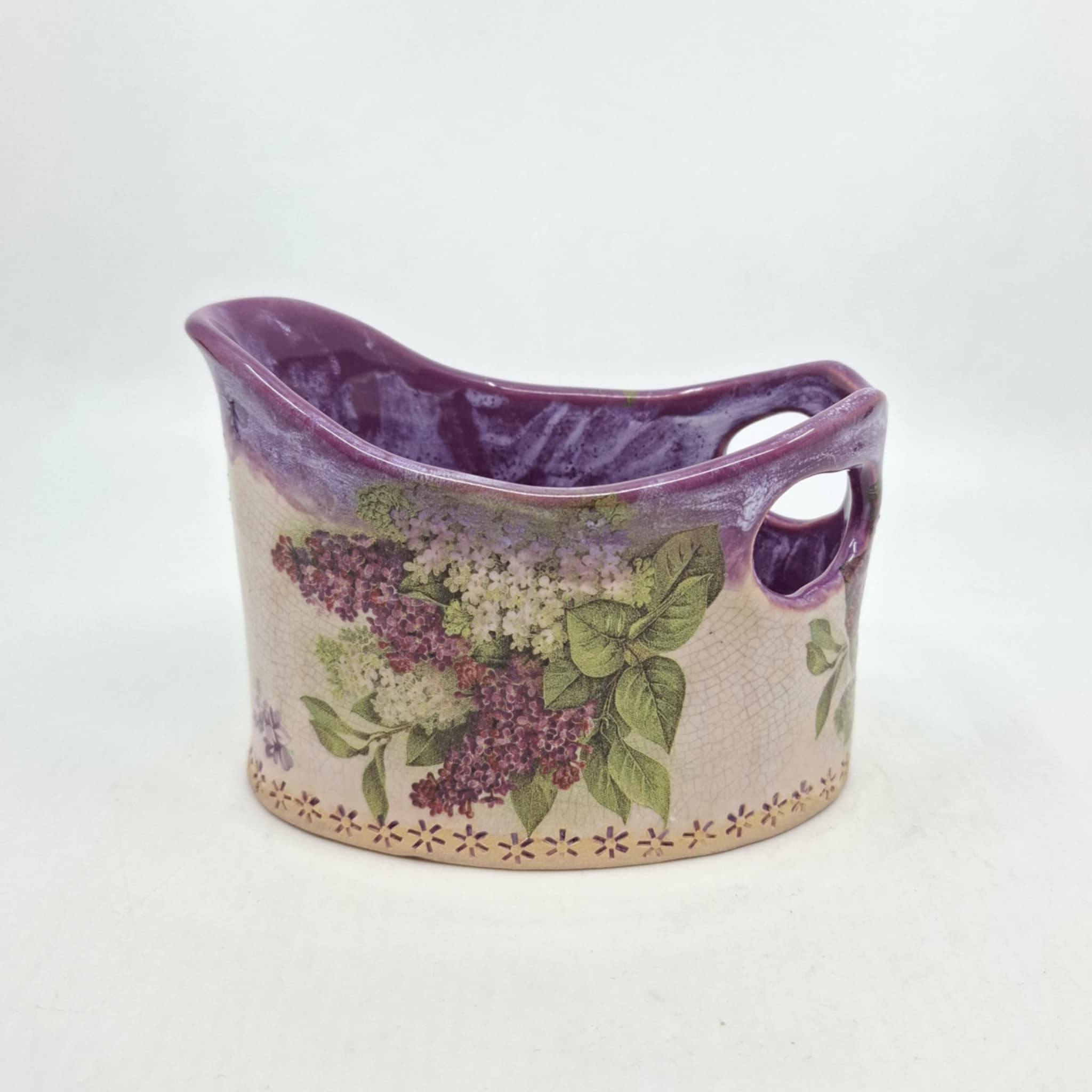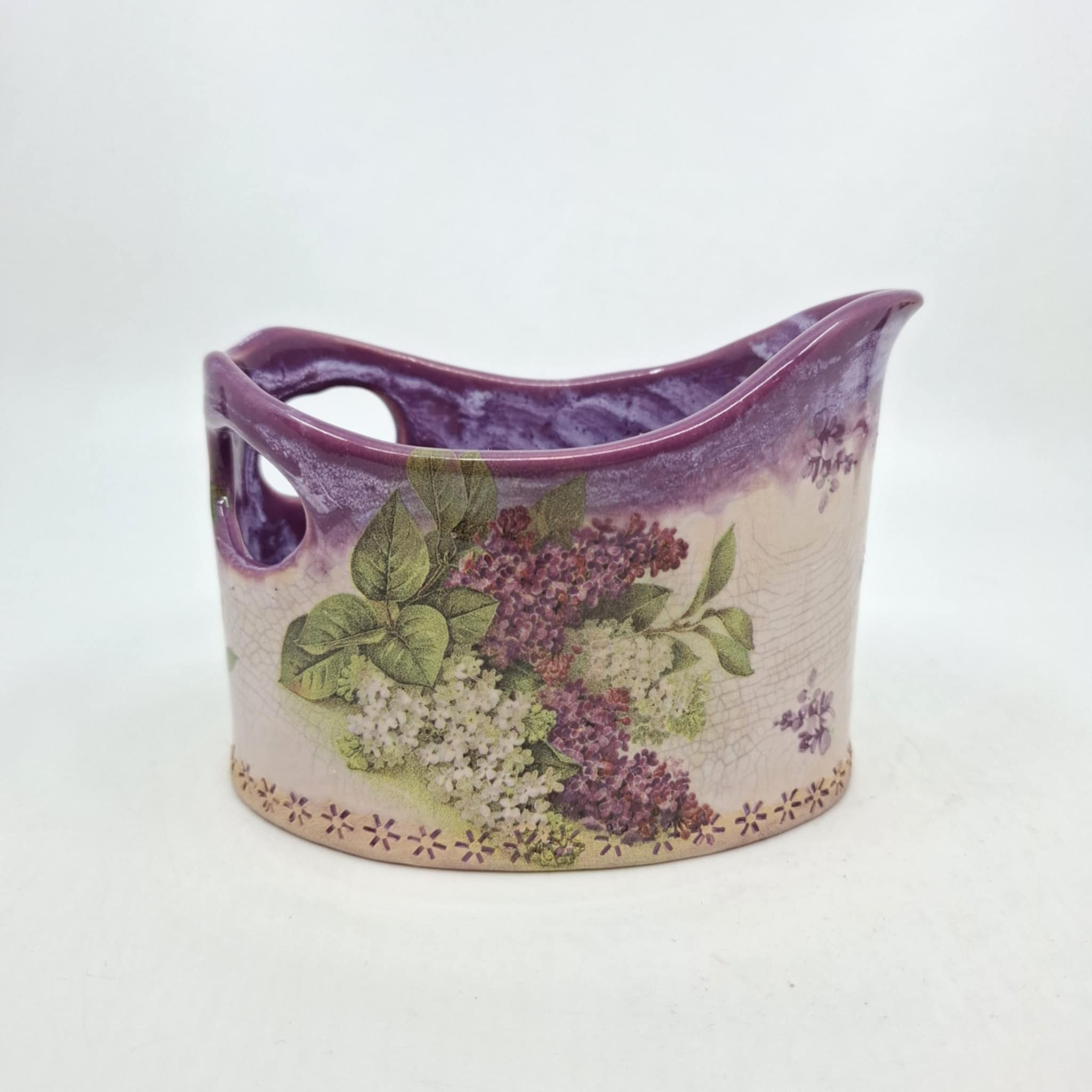 Keraamiline hoiunõu 0,5-liitrisele hapukoore kilepakile. Toode on valminud käsitööna ning võib esineda ebatasasusi, konarusi jms.