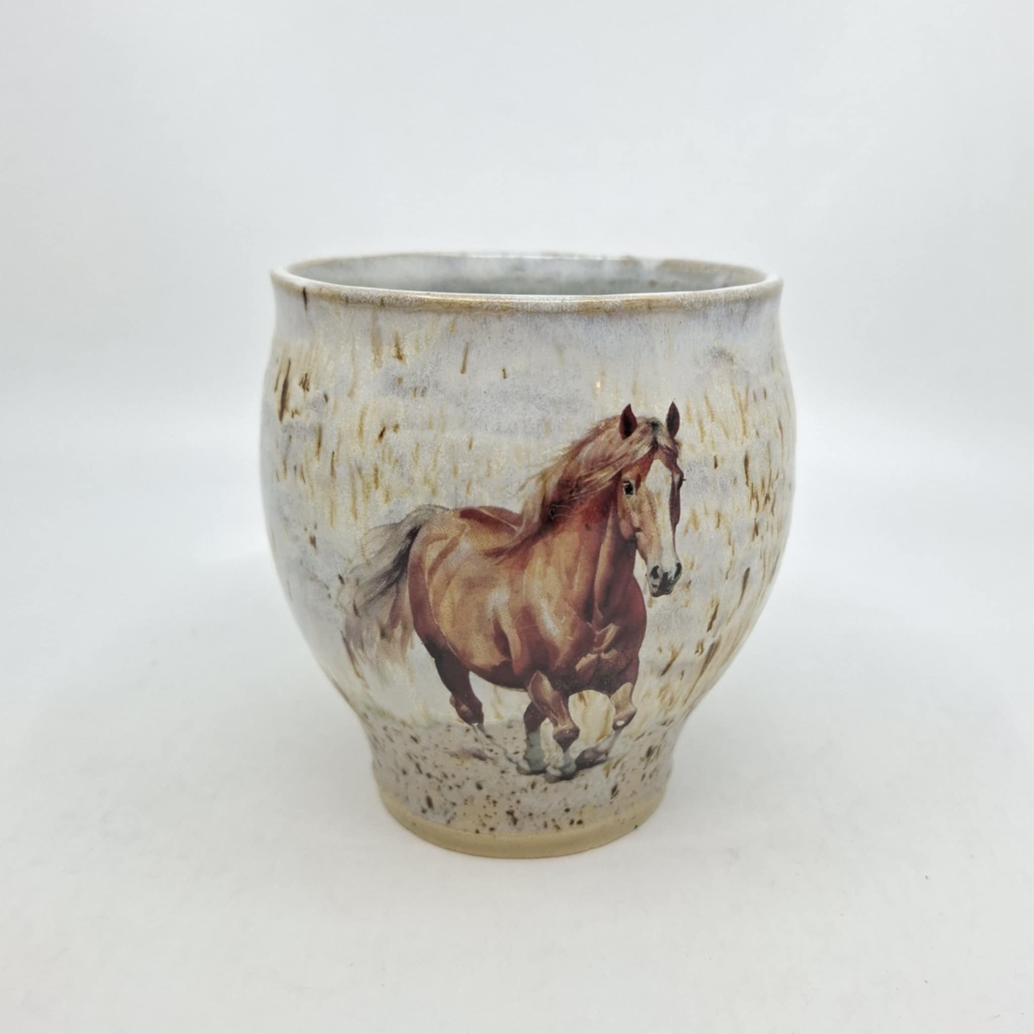 Potikedral treitud kruus, mis mahutab 450 ml, kõrgus 10,5 cm. Kruus on valminud käsitööna, võib esineda ebatasasusi, konarusi jms.