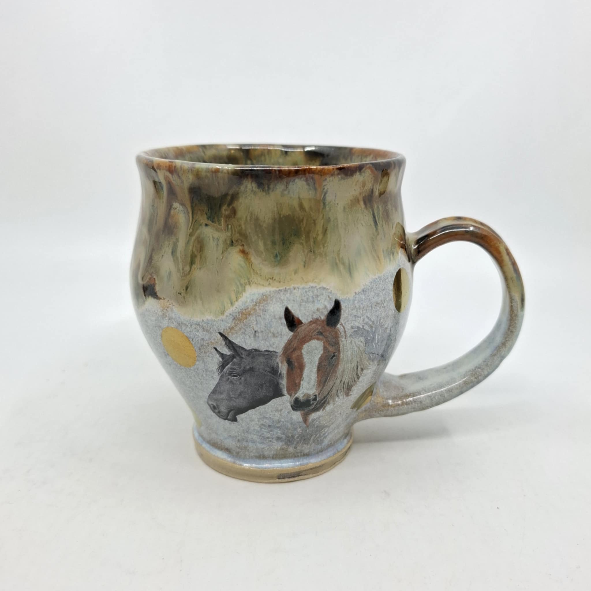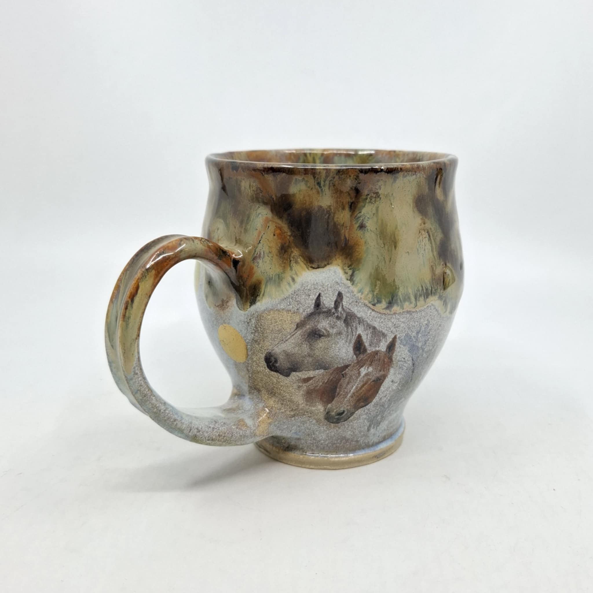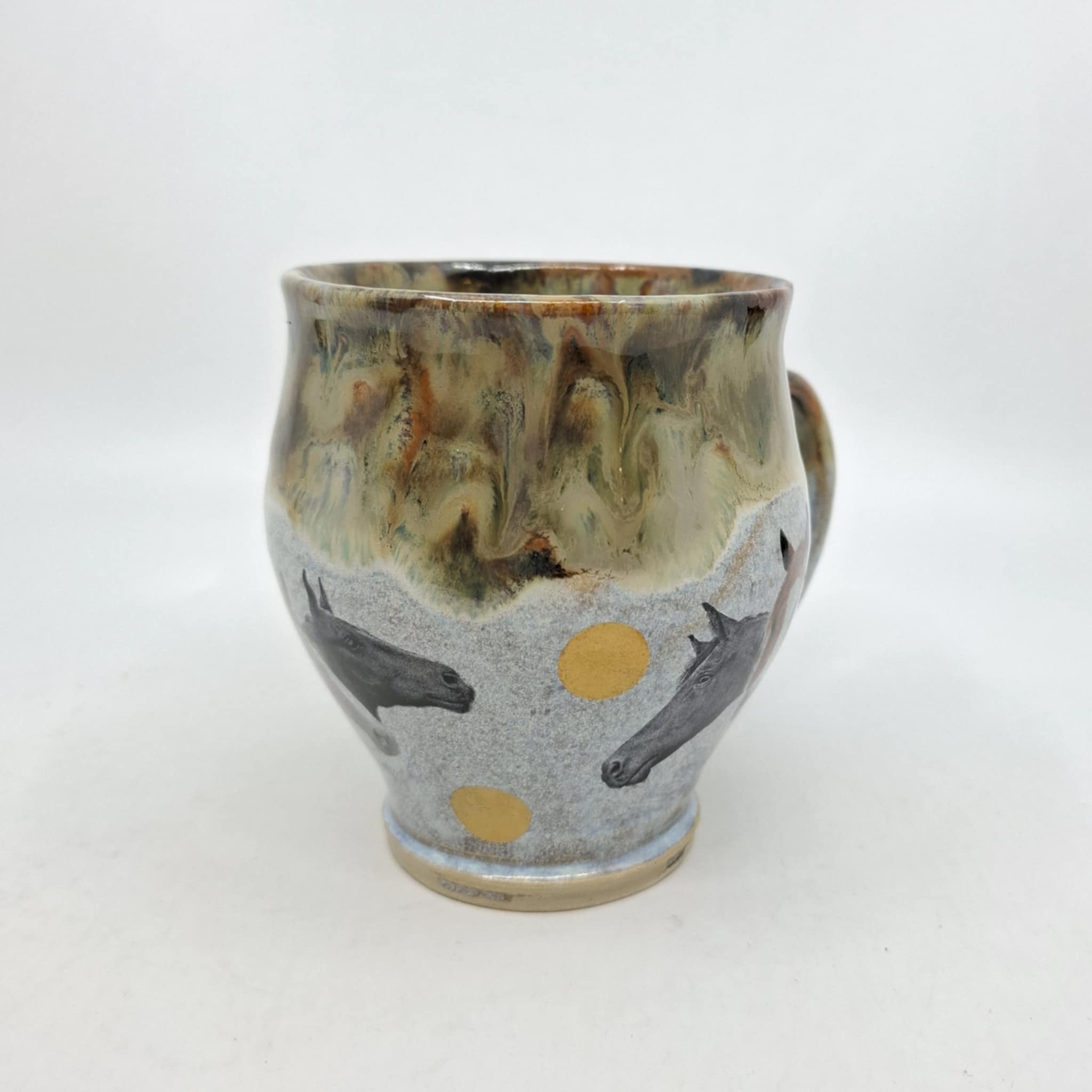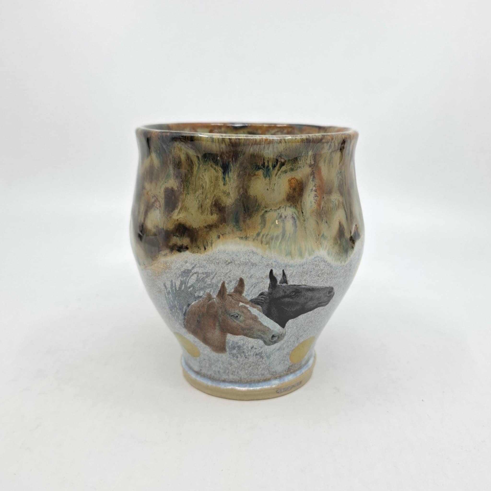 Potikedral treitud kruus, mis mahutab 400 ml, kõrgus 10,6 cm. Kruus on valminud käsitööna, võib esineda ebatasasusi, konarusi jms.
