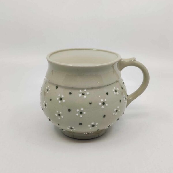 Portselanist heledates toonides kruus, mis mahutab ~350 ml ja kõrgus on 8,7 cm. Kruus on valminud käsitööna ja võib esineda konarusi vms.