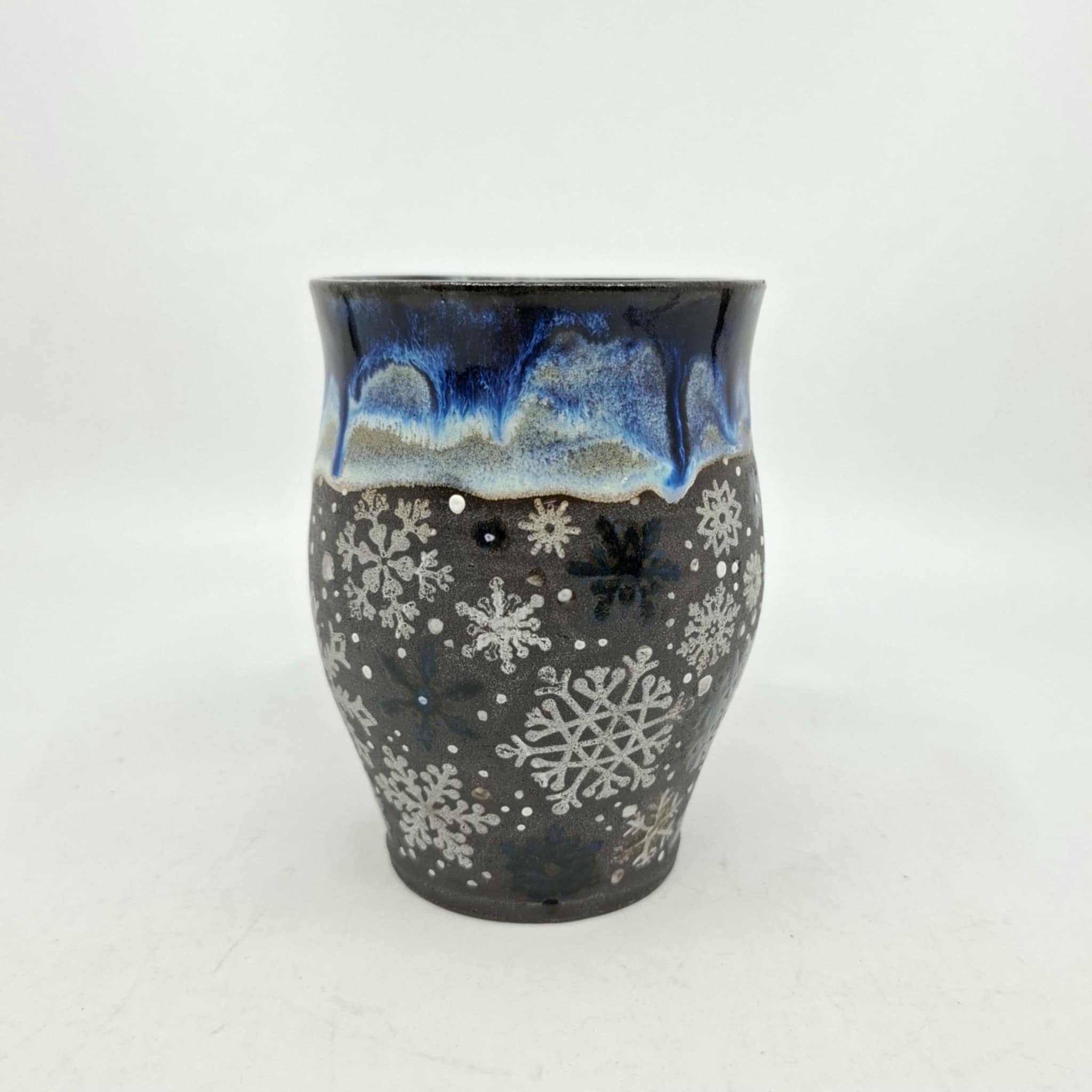 Potikedral mustast savist treitud kruus, mis mahutab 400 ml, kõrgus 11,8 cm. Kruus on valminud käsitööna, võib esineda ebatasasusi, konarusi jms.