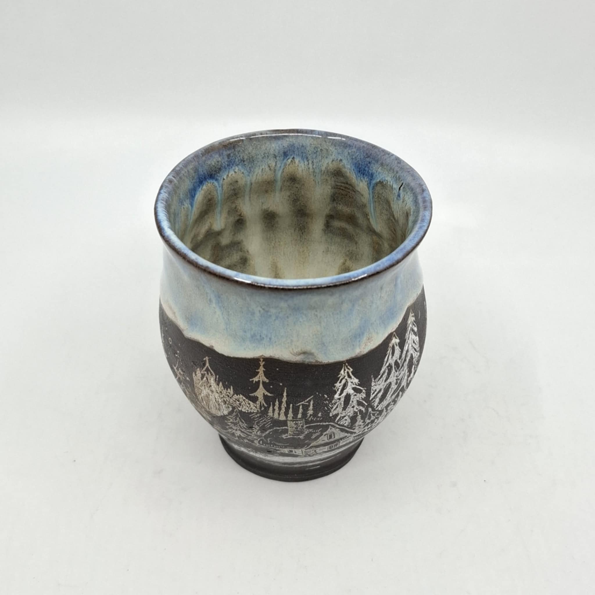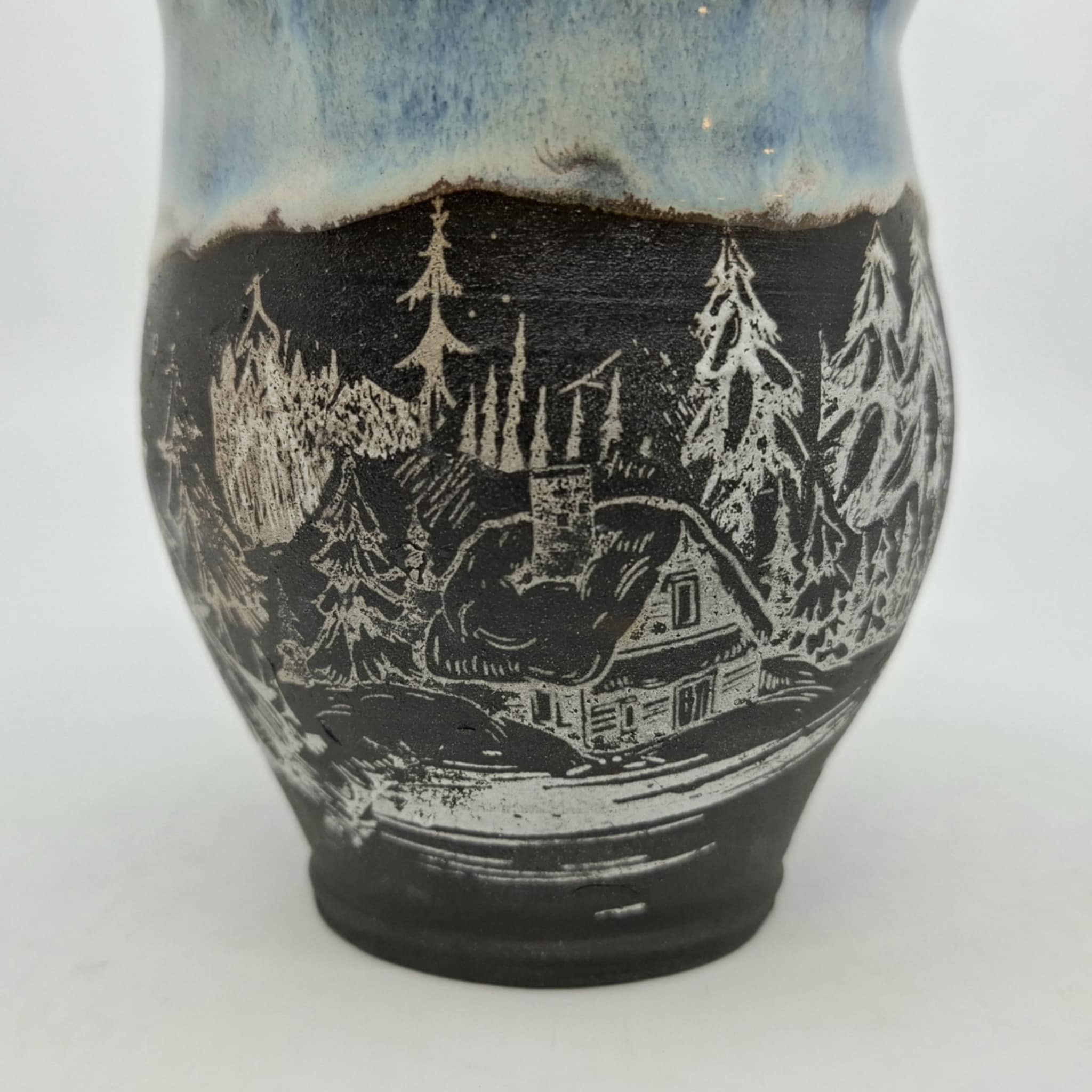 Potikedral mustast savist treitud kruus, mis mahutab kuni 450 ml, kõrgus 11,3 cm. Kruus on valminud käsitööna, võib esineda ebatasasusi, konarusi jms.