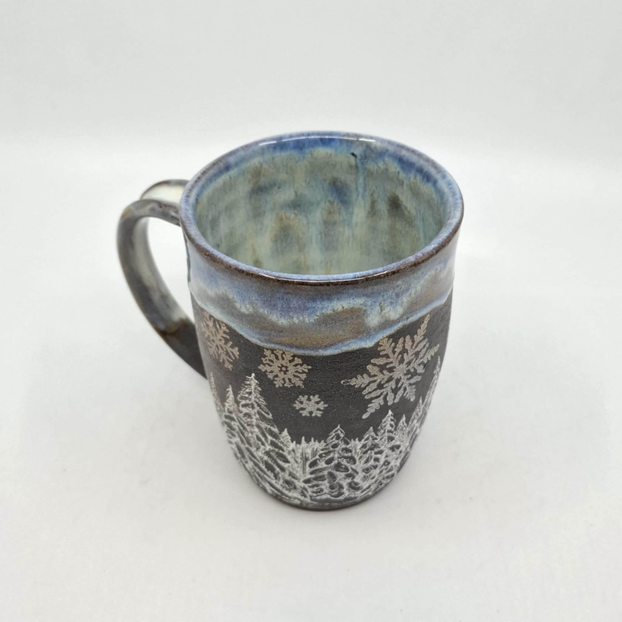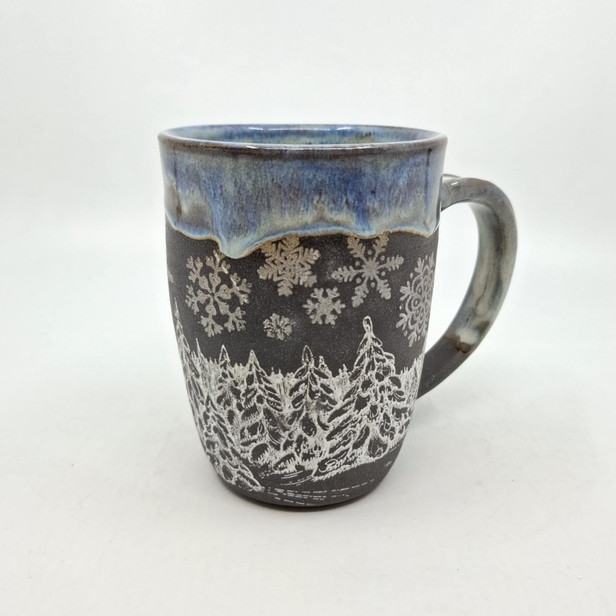 Potikedral mustast savist treitud kruus, mis mahutab 450 ml, kõrgus 11,8 cm. Kruus on valminud käsitööna, võib esineda ebatasasusi, konarusi jms.