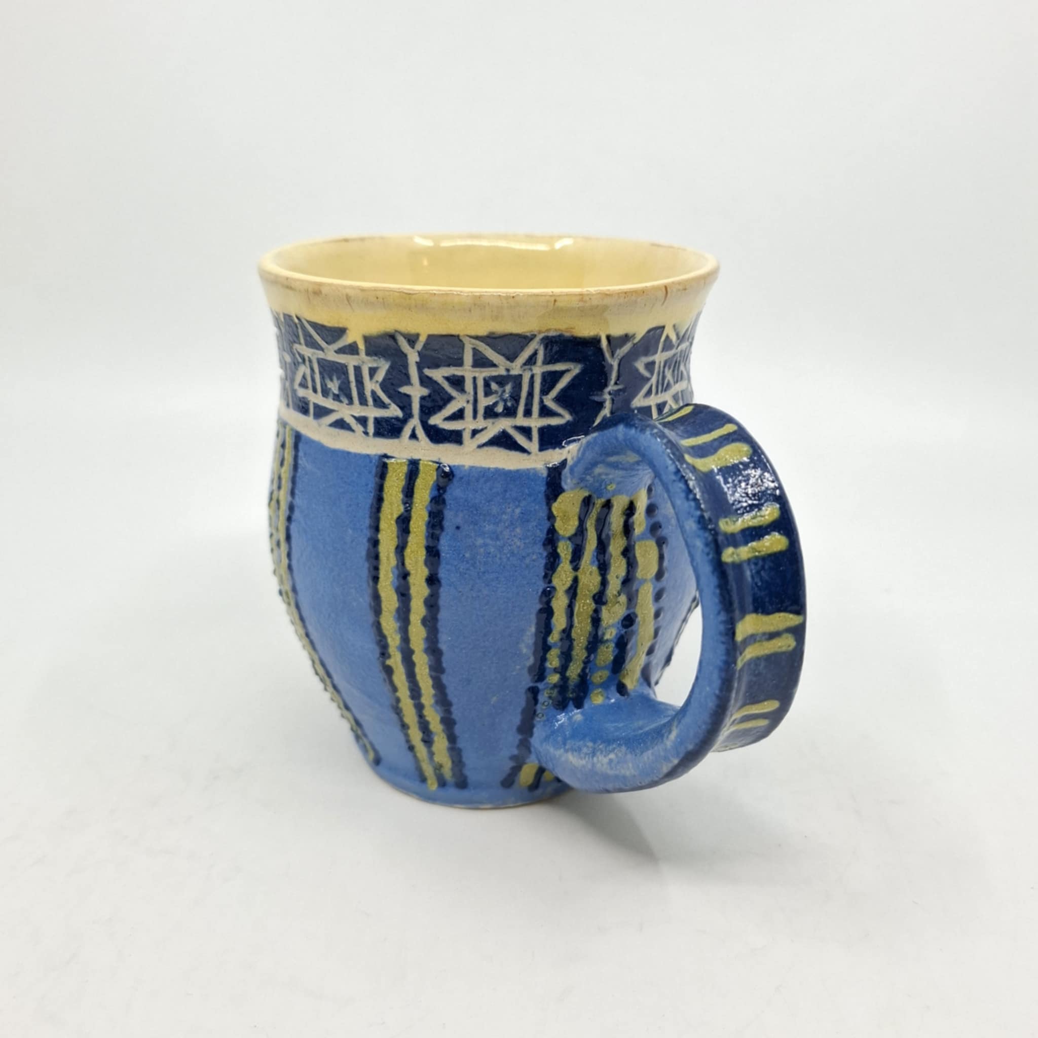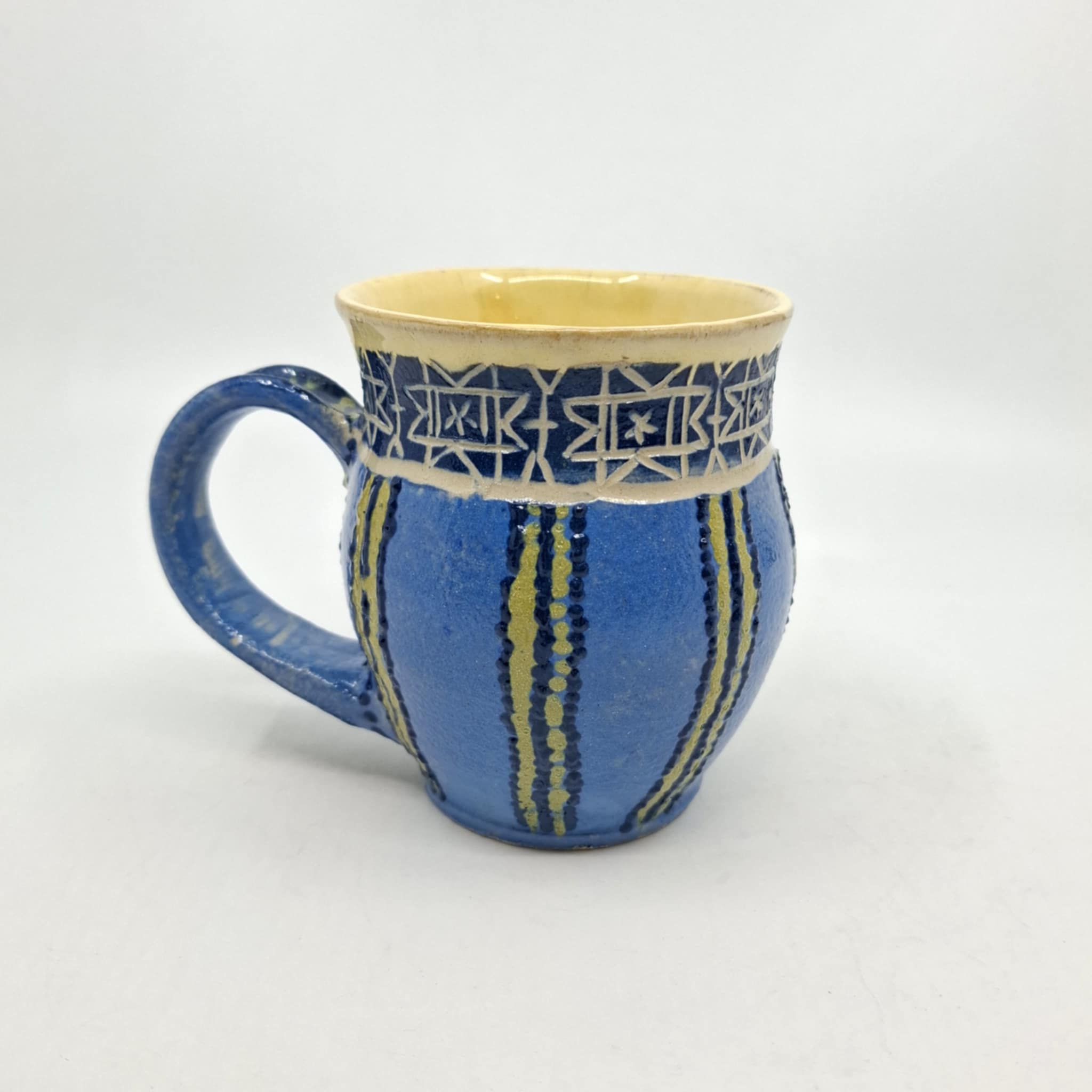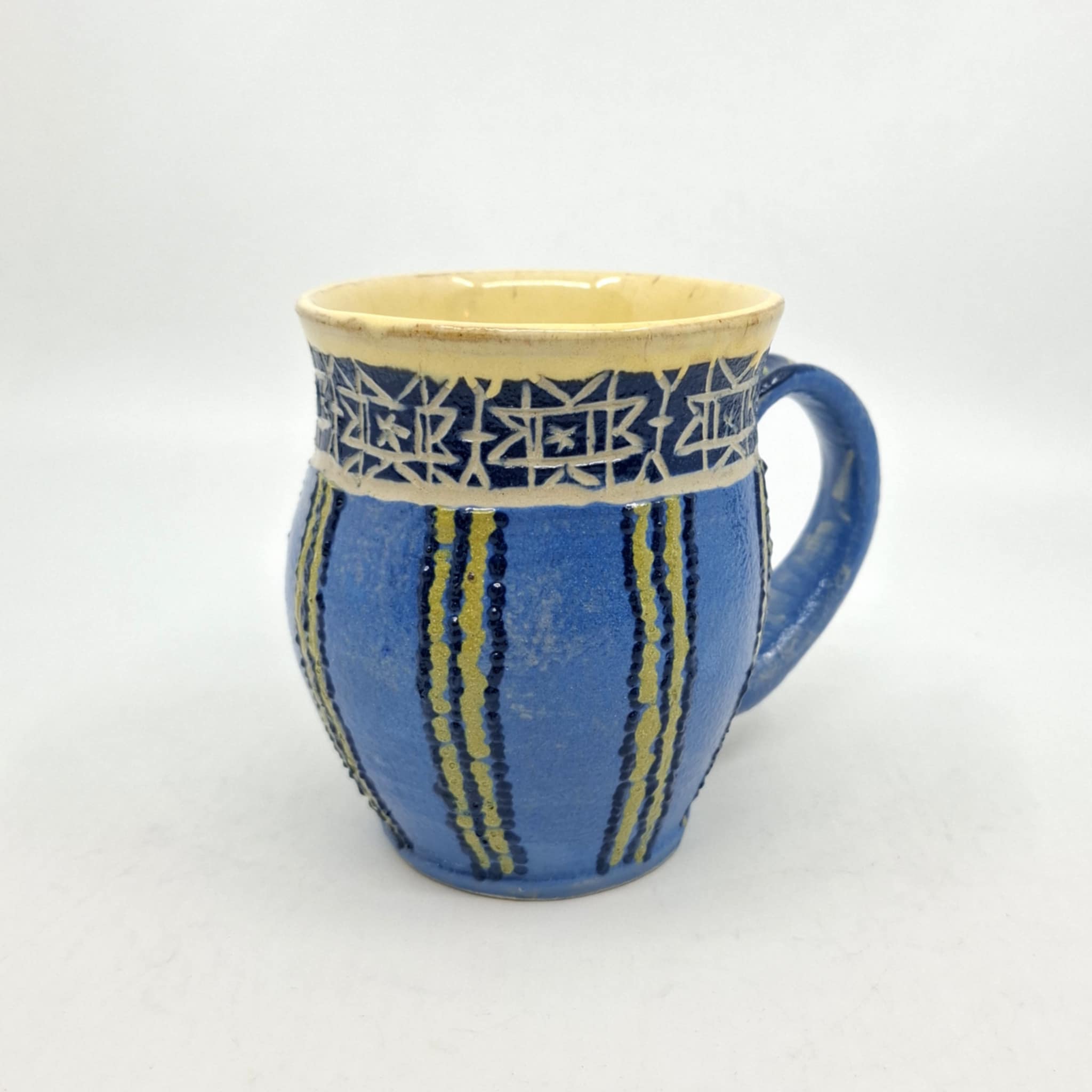 Potikedral treitud kruus, mis mahutab 350 ml, kõrgus 10,2 cm. Kruus on valminud käsitööna, võib esineda ebatasasusi, konarusi jms.
