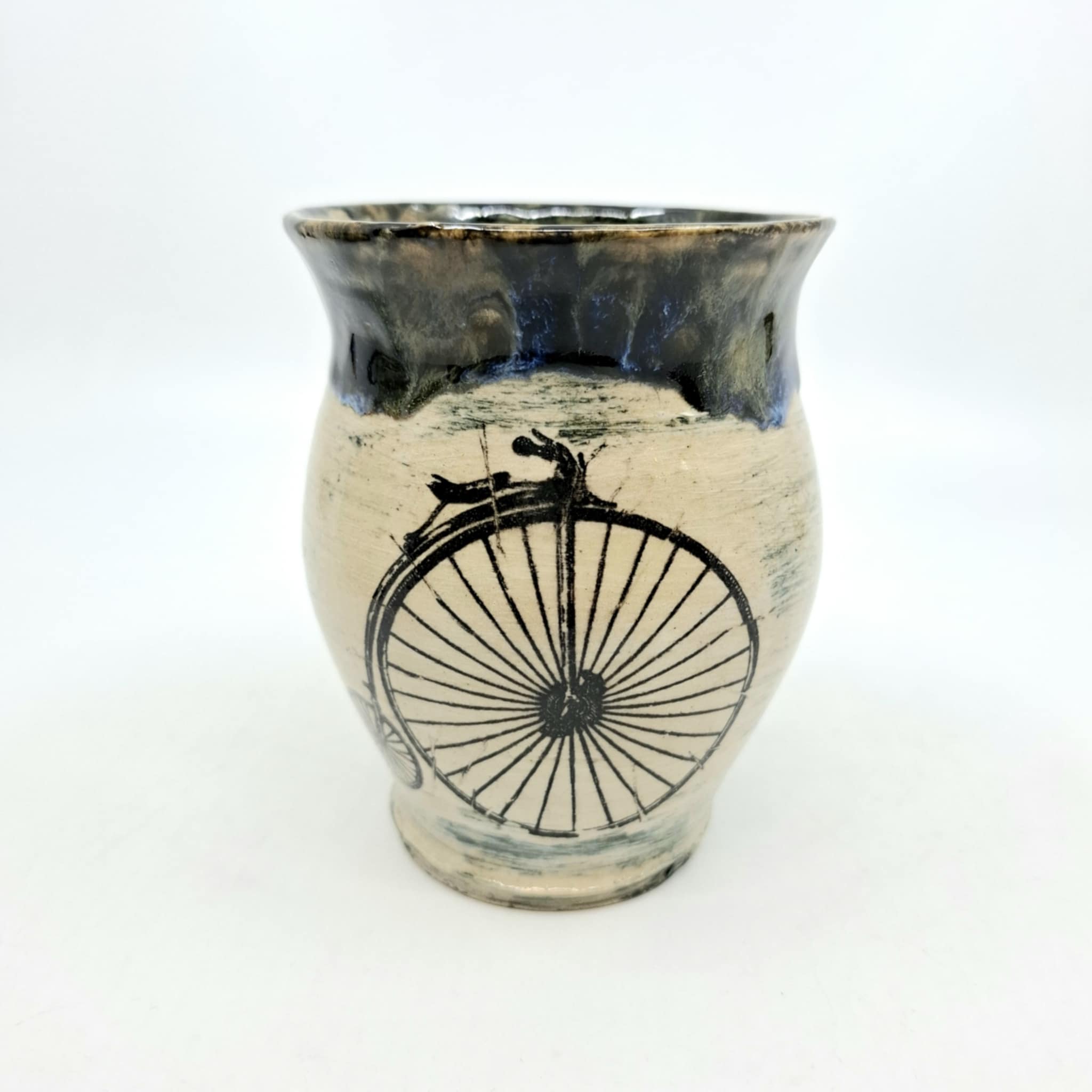 Potikedral treitud kruus, mis mahutab 400 ml, kõrgus 11,8 cm. Kruus on valminud käsitööna, võib esineda ebatasasusi, konarusi jms.
