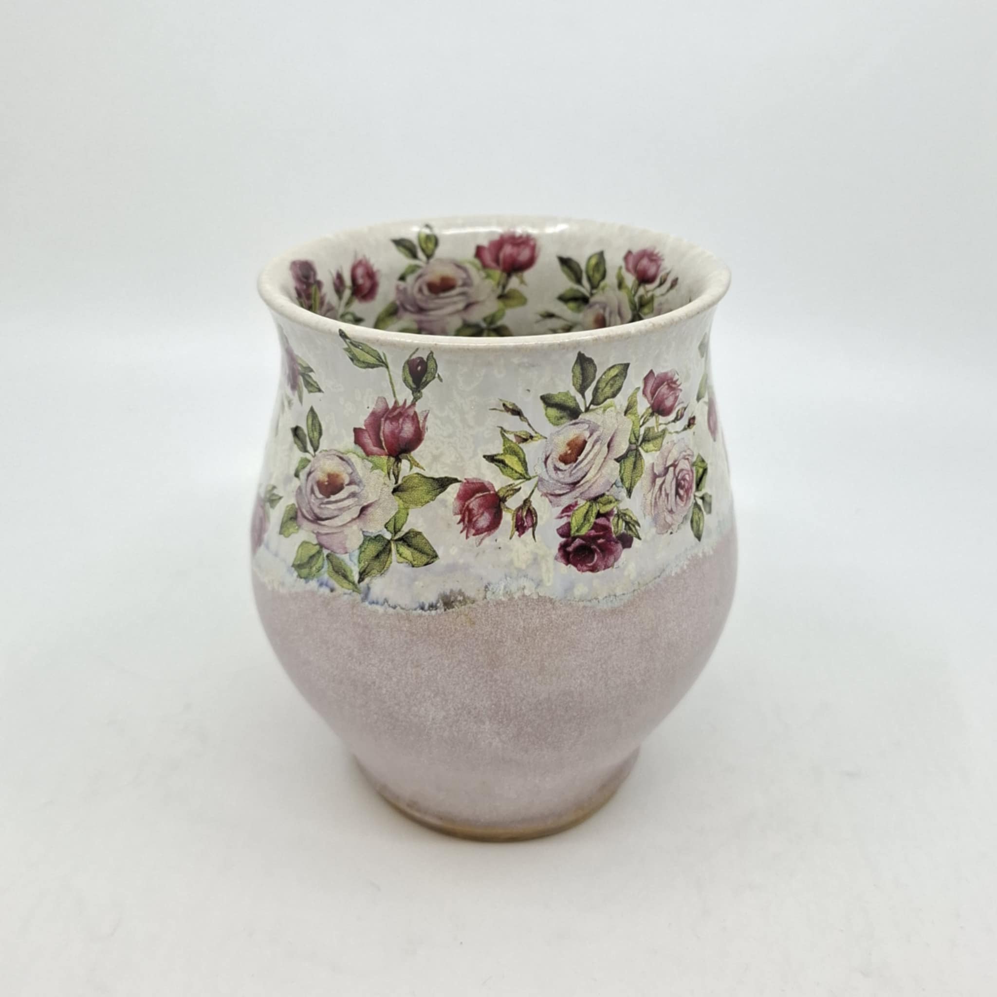 Potikedral treitud kruus, mis mahutab 400 ml, kõrgus 11 cm. Kruus on valminud käsitööna, võib esineda ebatasasusi, konarusi jms.