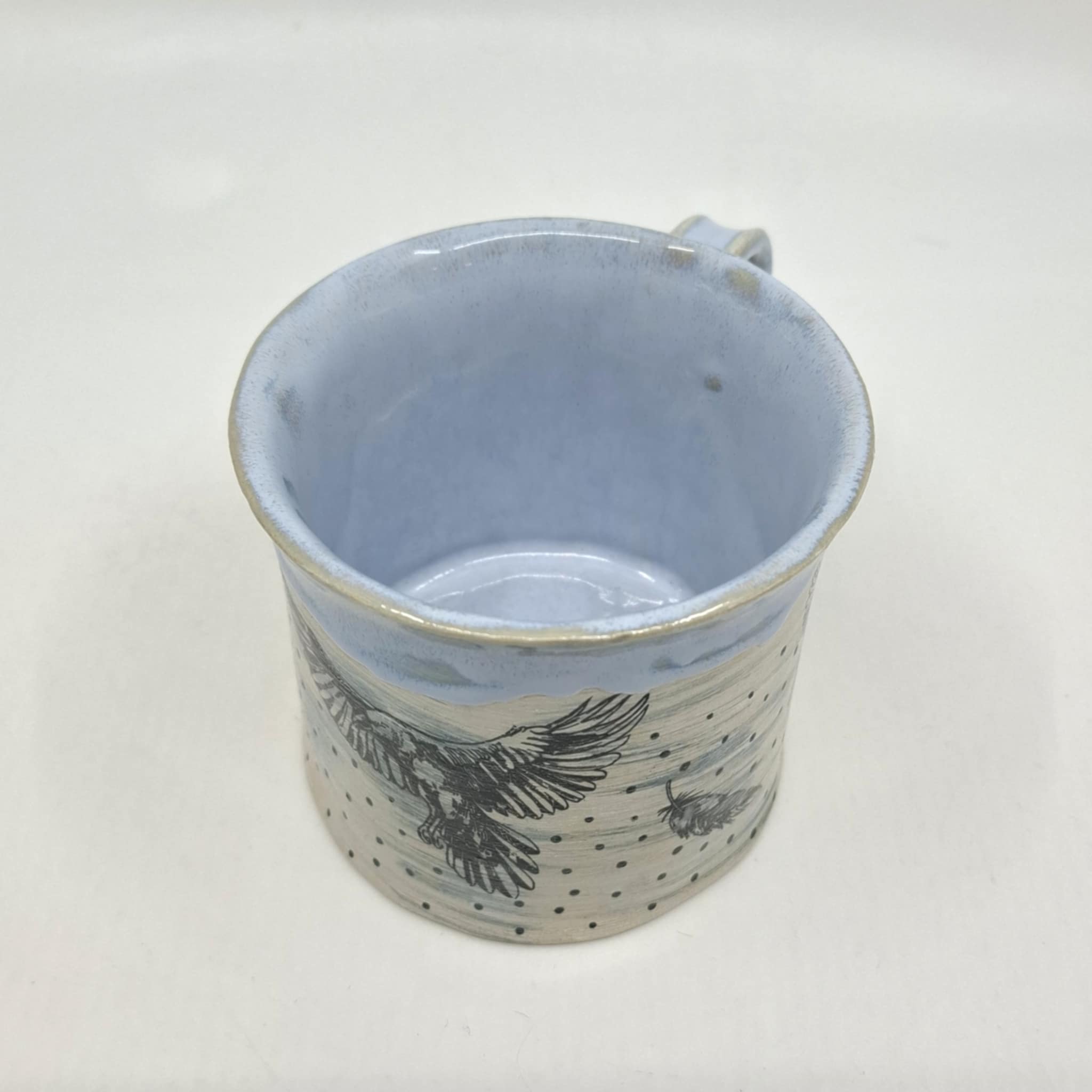 Keraamiline kruus, mis mahutab ~400 ml, kõrgus 8,5 cm. Kruus on valminud käsitööna ning võib esineda ebatasasusi, konarusi jms.