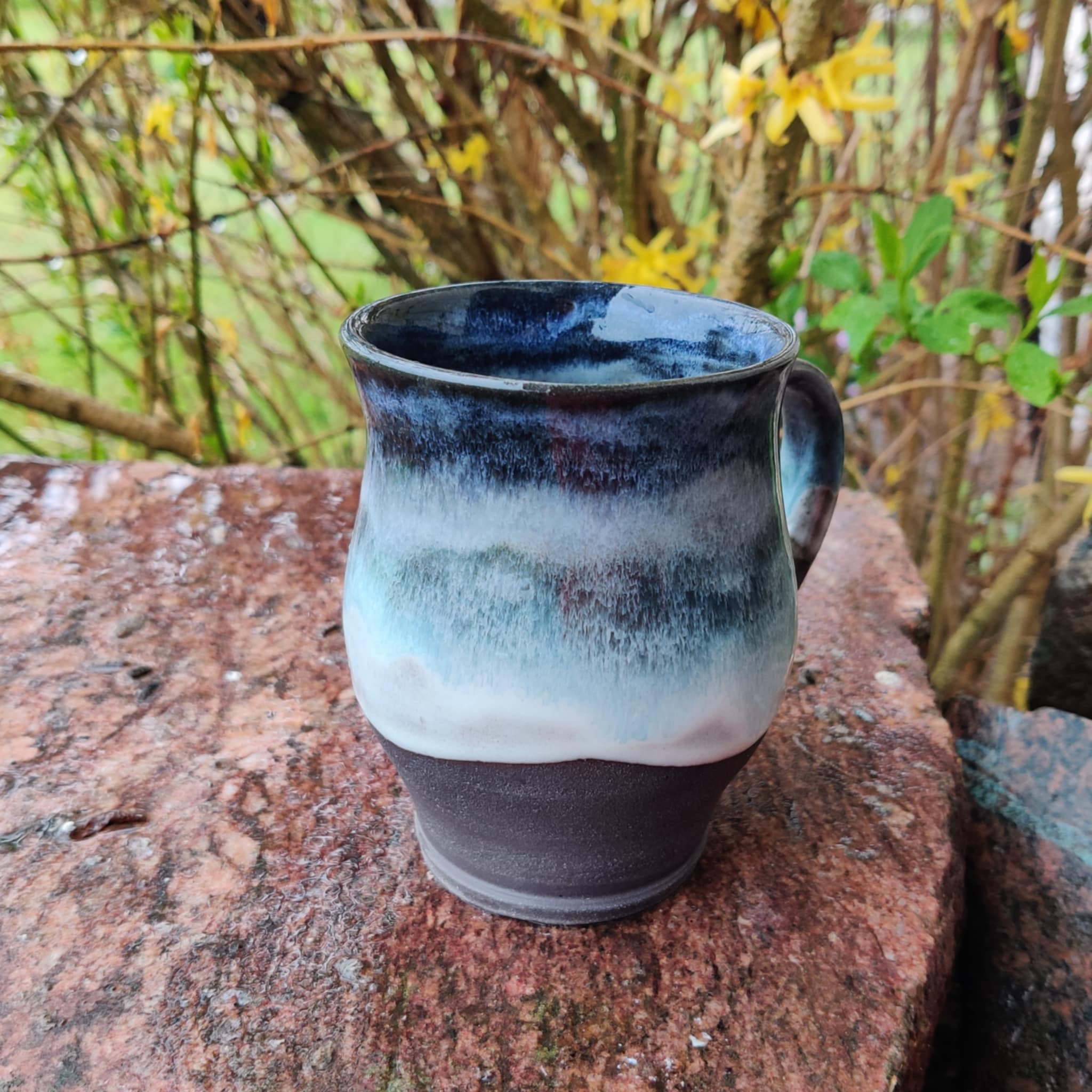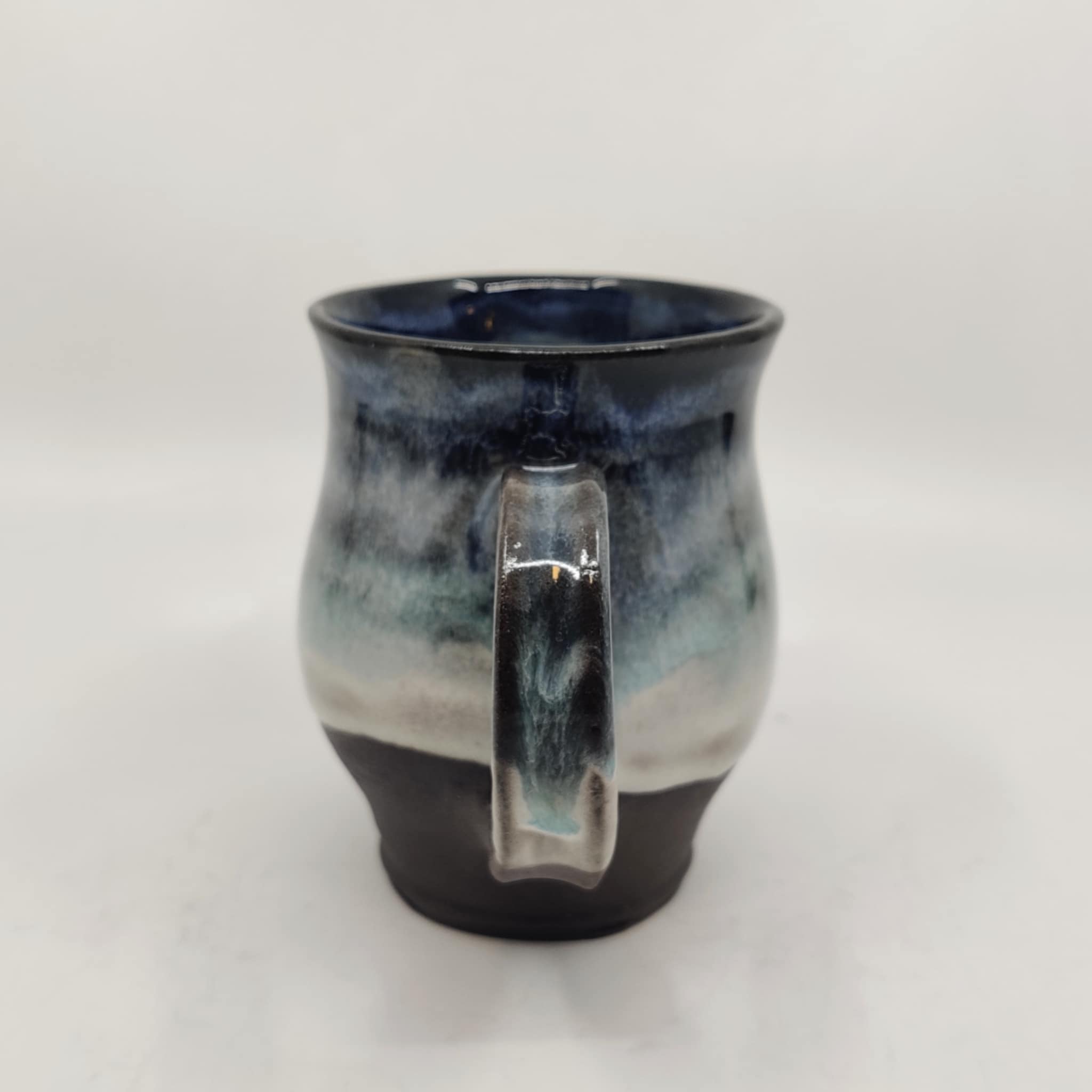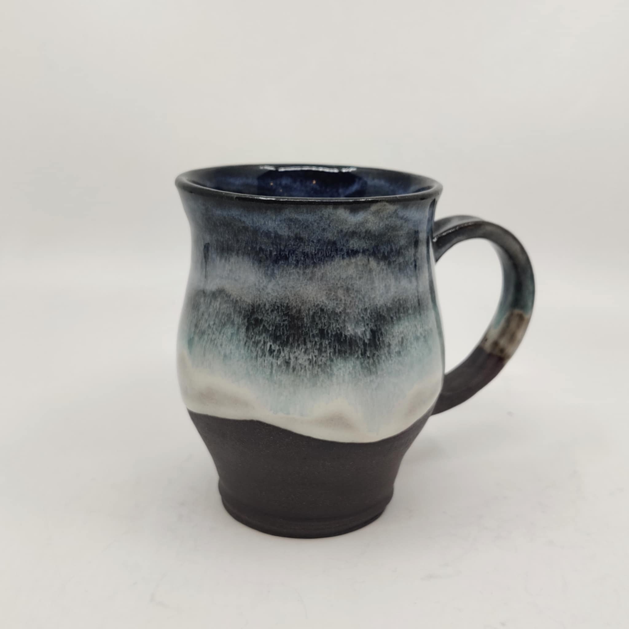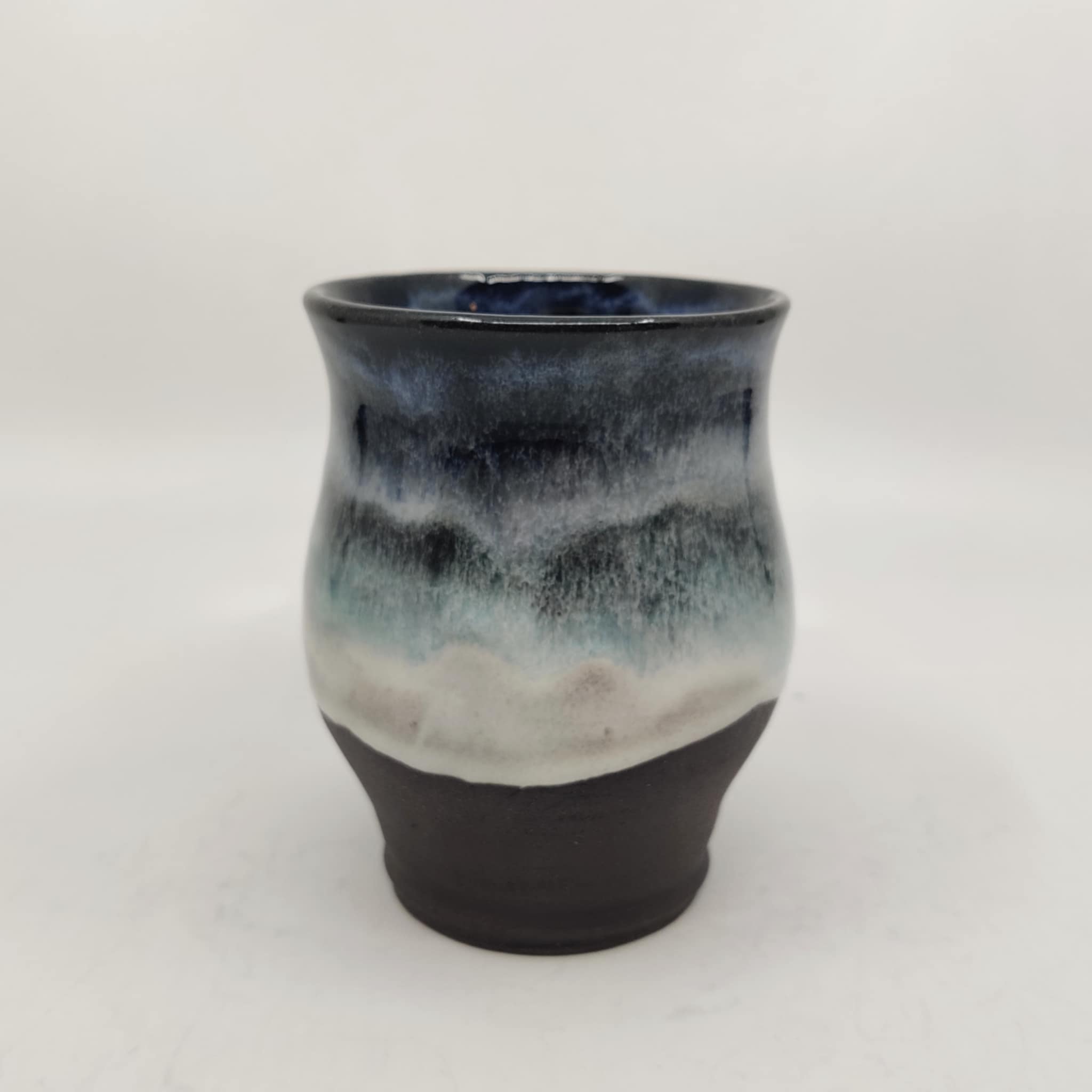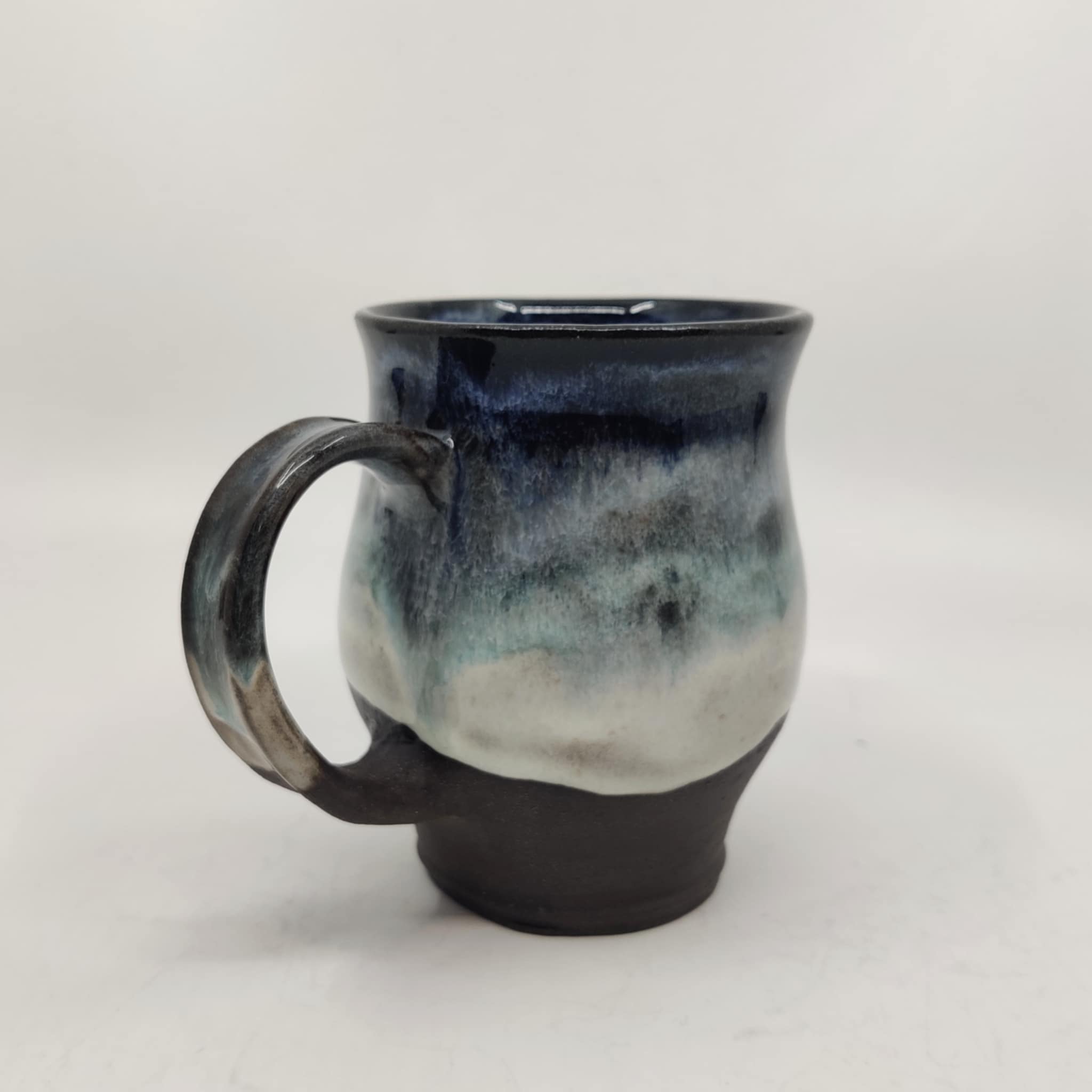 Potikedral mustast savist treitud kruus, mis mahutab 350 ml, kõrgus 11,1 cm. Kruus on valminud käsitööna, võib esineda ebatasasusi, konarusi jms.