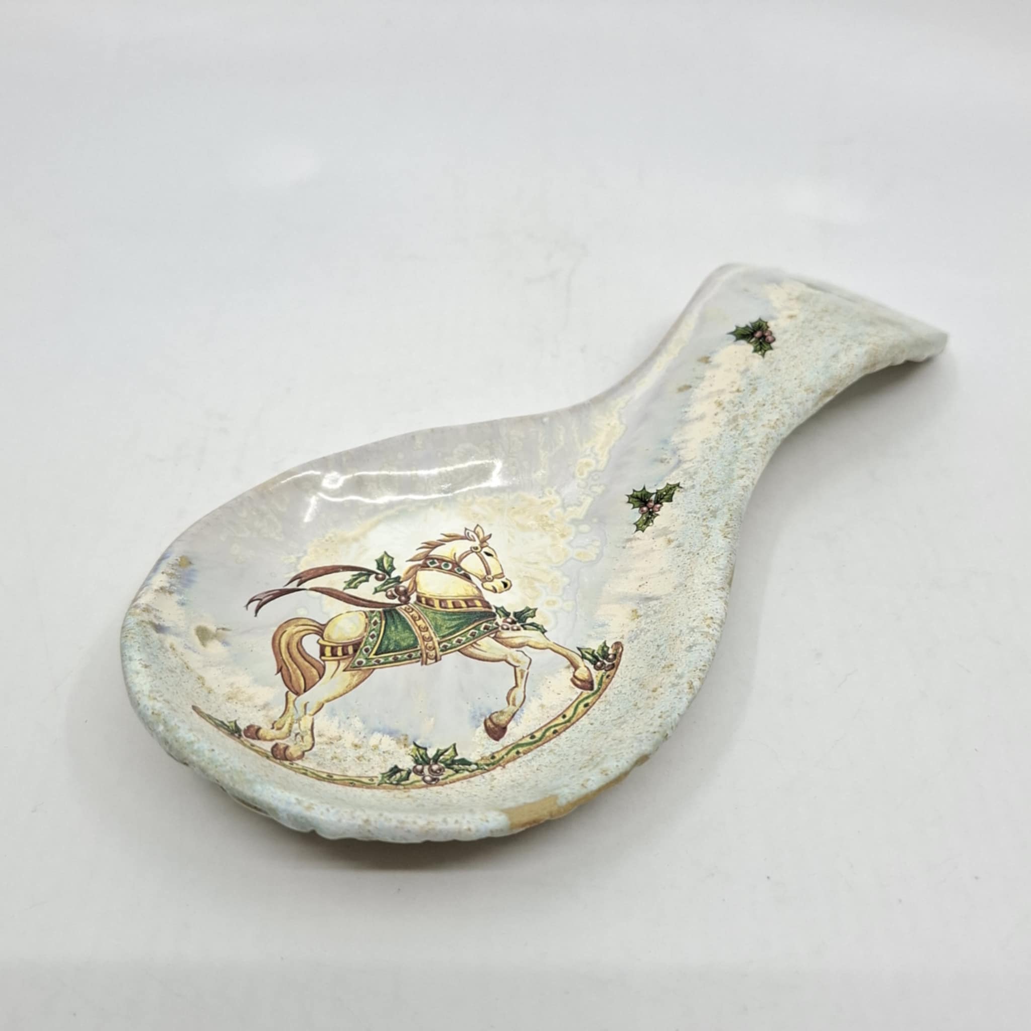 Suurem keraamiline lusikas, kuhu on mugav toidu valmistamise ajal kulpi toetada. Lusikas on valminud käsitööna ning võib esineda ebatasasusi, konarusi jms