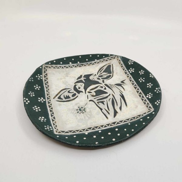 Ümar vaagen, mille läbimõõt on ~ 20,5 – 19 cm. Vaagen on kaetud must ja rohelise angoobiga, seejärel läbipaistva glasuuriga. Toode on valminud käsitööna, võib esineda konarusi vms.
