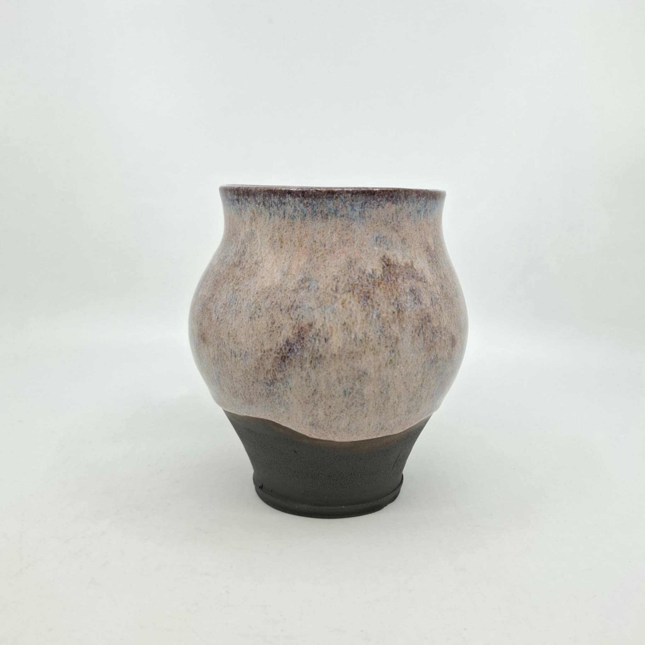 Potikedral mustast savist treitud lillevaas, kõrgus 13,5 cm, Ø 9,5 cm. Vaas on valminud käsitööna, võib esineda ebatasasusi, konarusi jms.