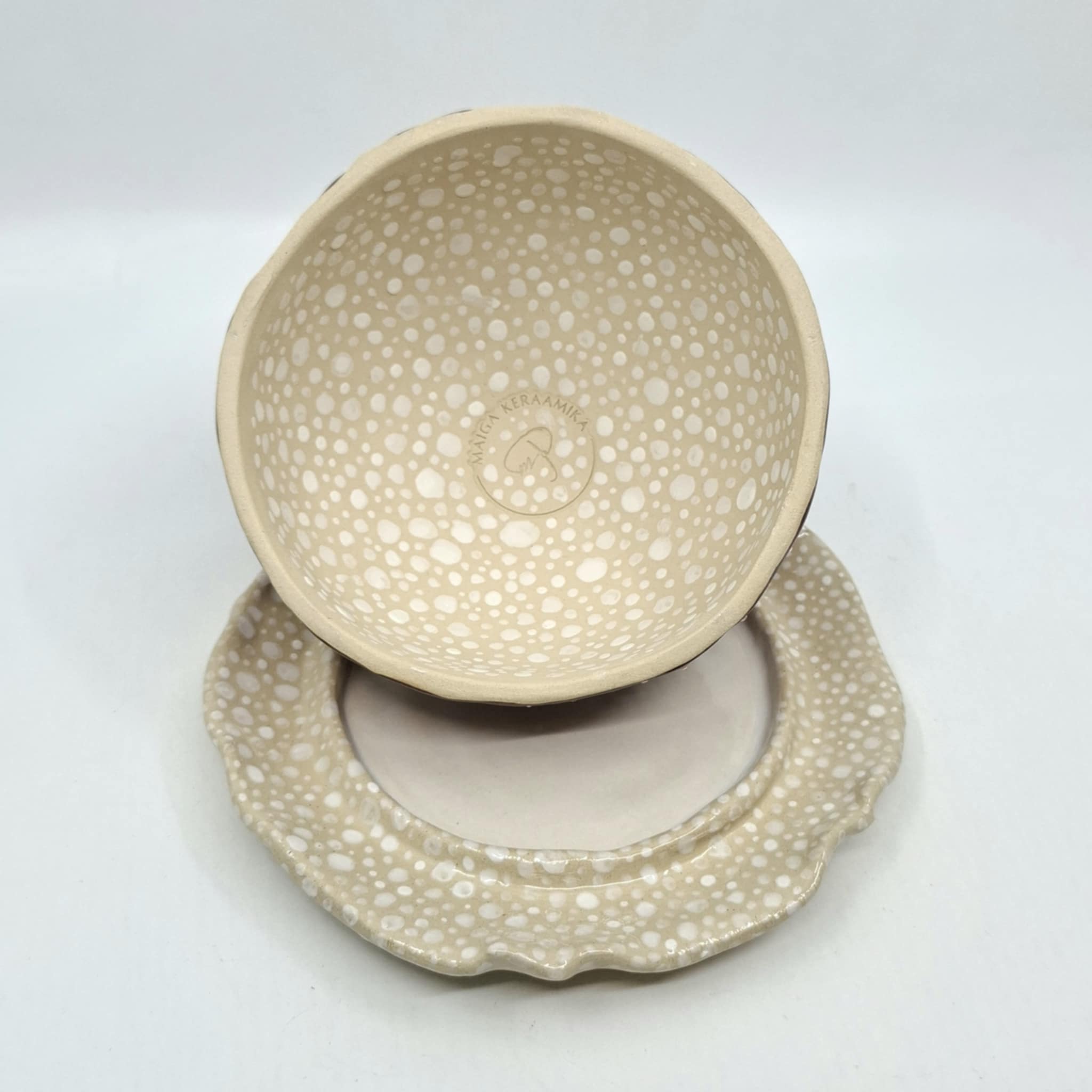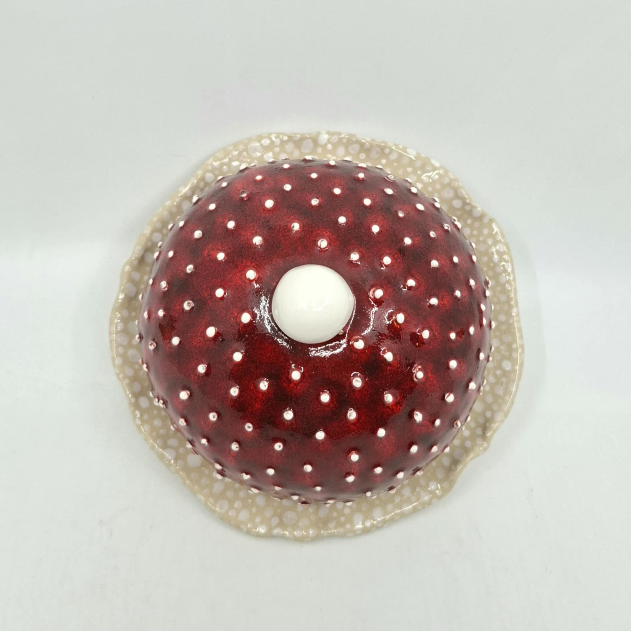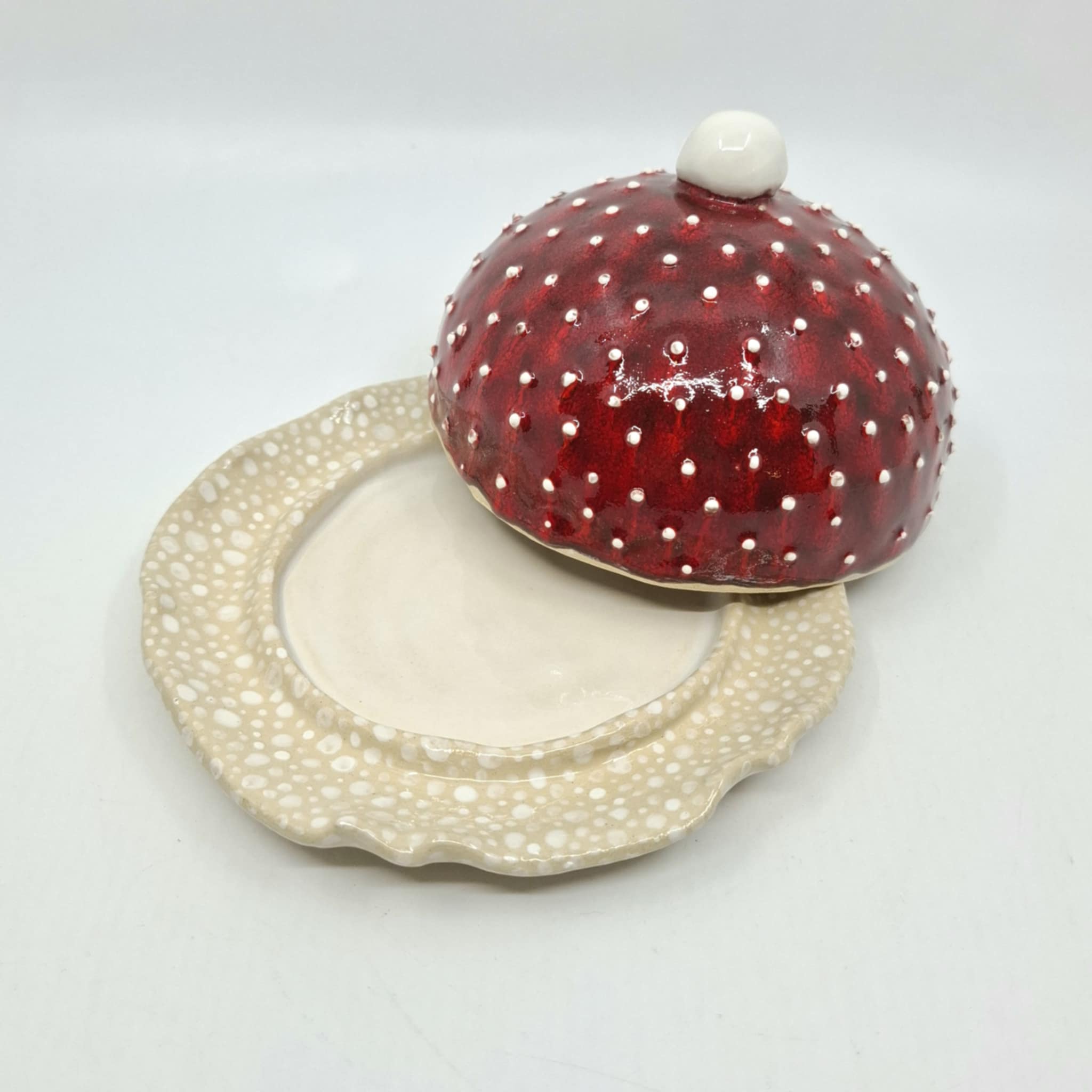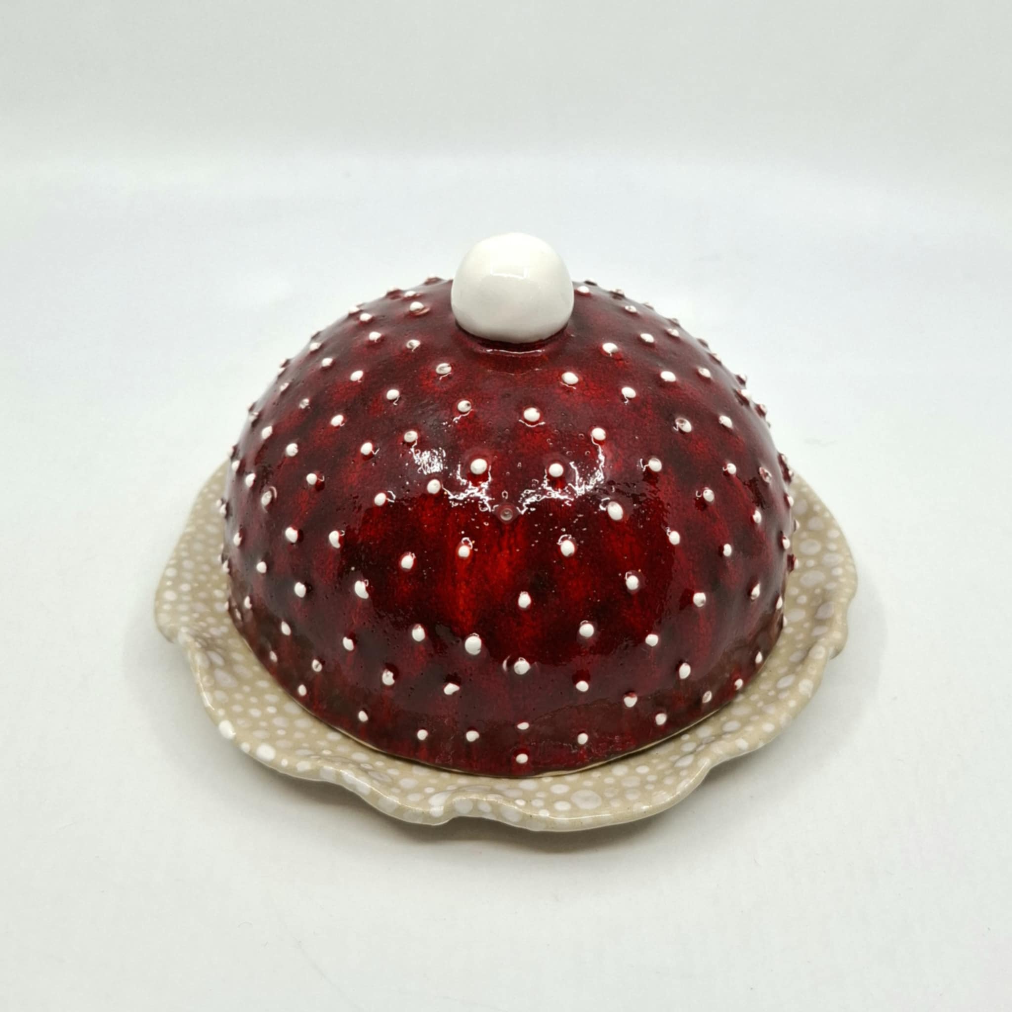 Keraamiline kaanega alus võile, juustule vms. Alustaldriku läbimõõt on 16,5 cm, sisemise ringil 10,5 cm. Nupu kõrgus ~10,5 cm. Toode on valminud käsitööna ning seetõttu võib esineda ebatasasusi, konarusi jms.